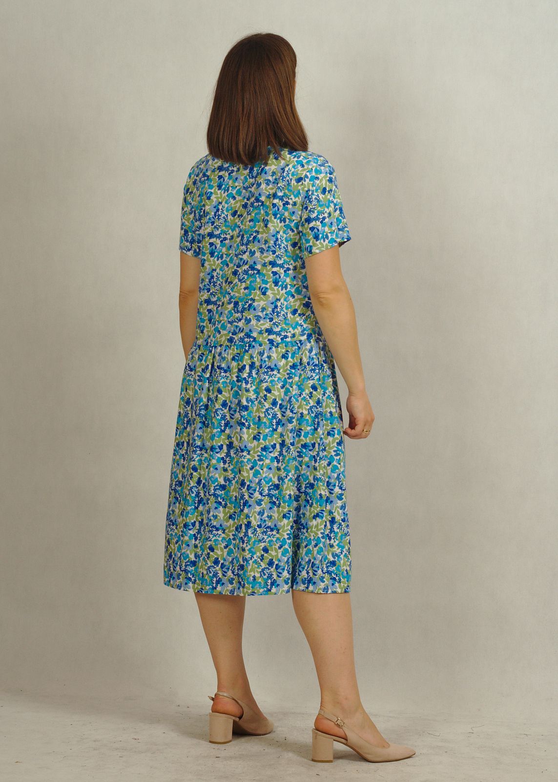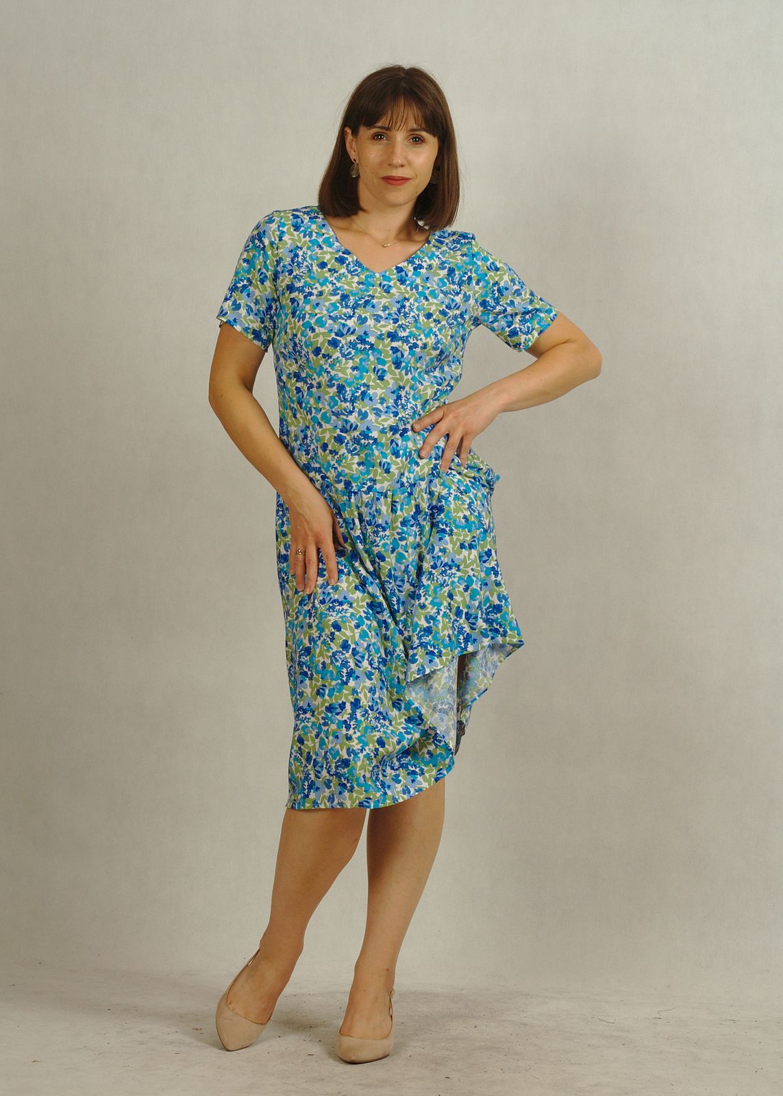 Sukienka błękitna*w drobne kwiatuszki z pięknym dekoltem w serek, która podkreśla kobiecą sylwetkę doda Ci elegancji.