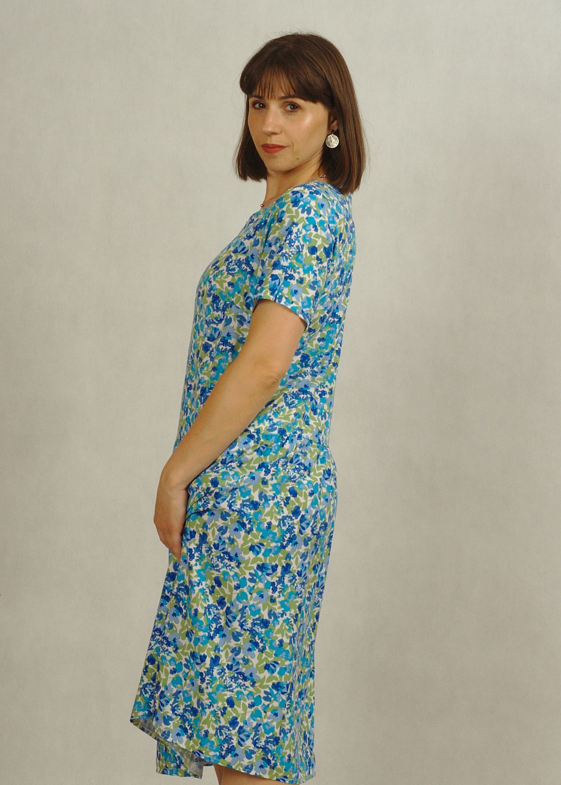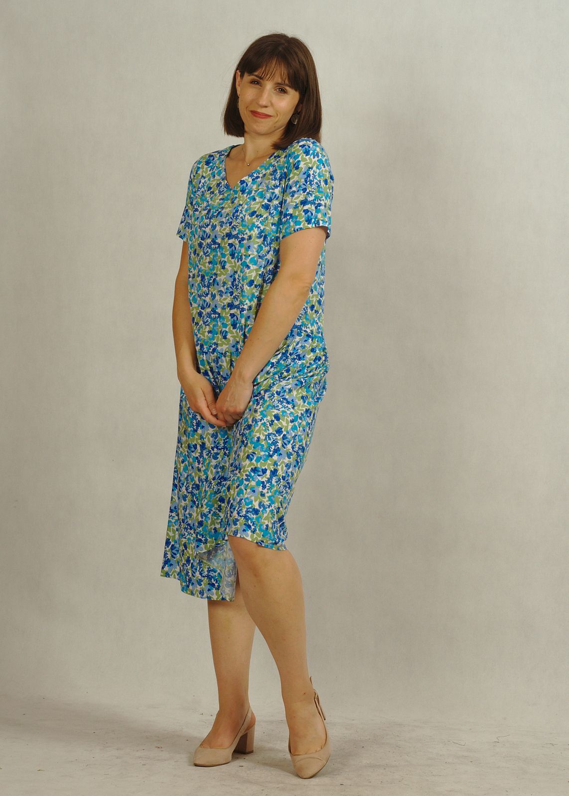 Oferujemy sukienkę na krótki rękaw, która świetnie sprawdzi się podczas ciepłych dni, zapewniając komfort i styl.