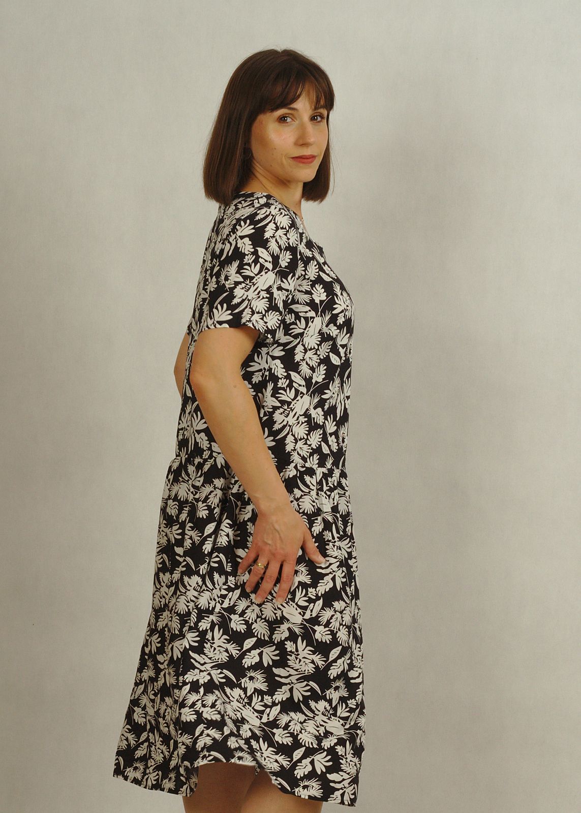 Oferujemy sukienkę na krótki rękaw, która świetnie sprawdzi się podczas ciepłych dni, zapewniając komfort i styl.