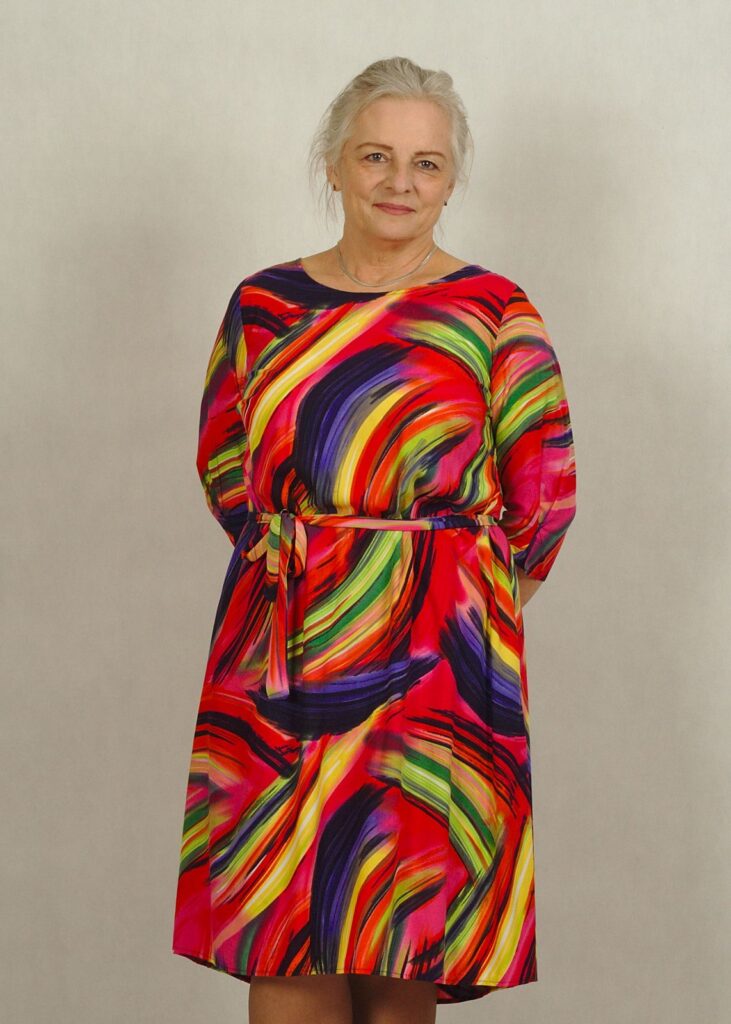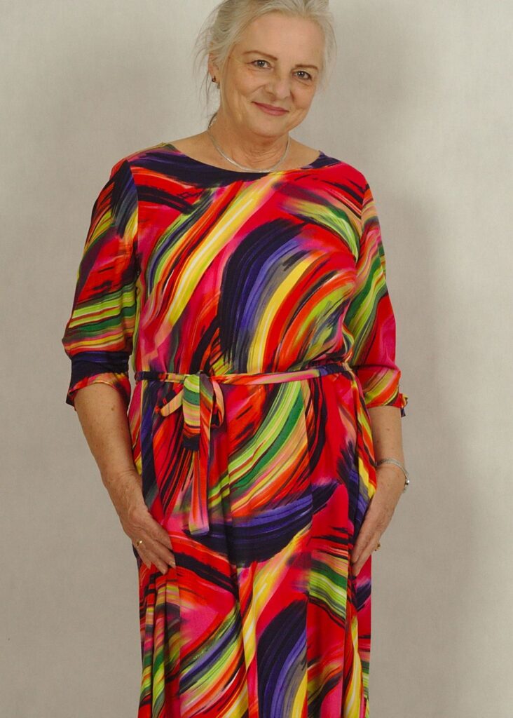 Sukienka zaprojektowana została i uszyta w Polsce, w rozmiarach standardowych oraz plus size.