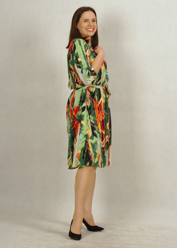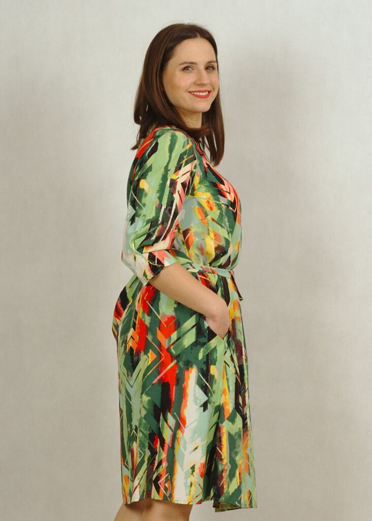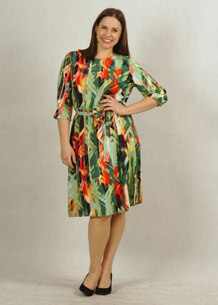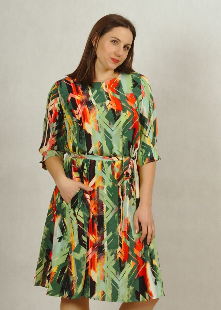 Sukienka zaprojektowana została i uszyta w Polsce, w rozmiarach standardowych oraz plus size.