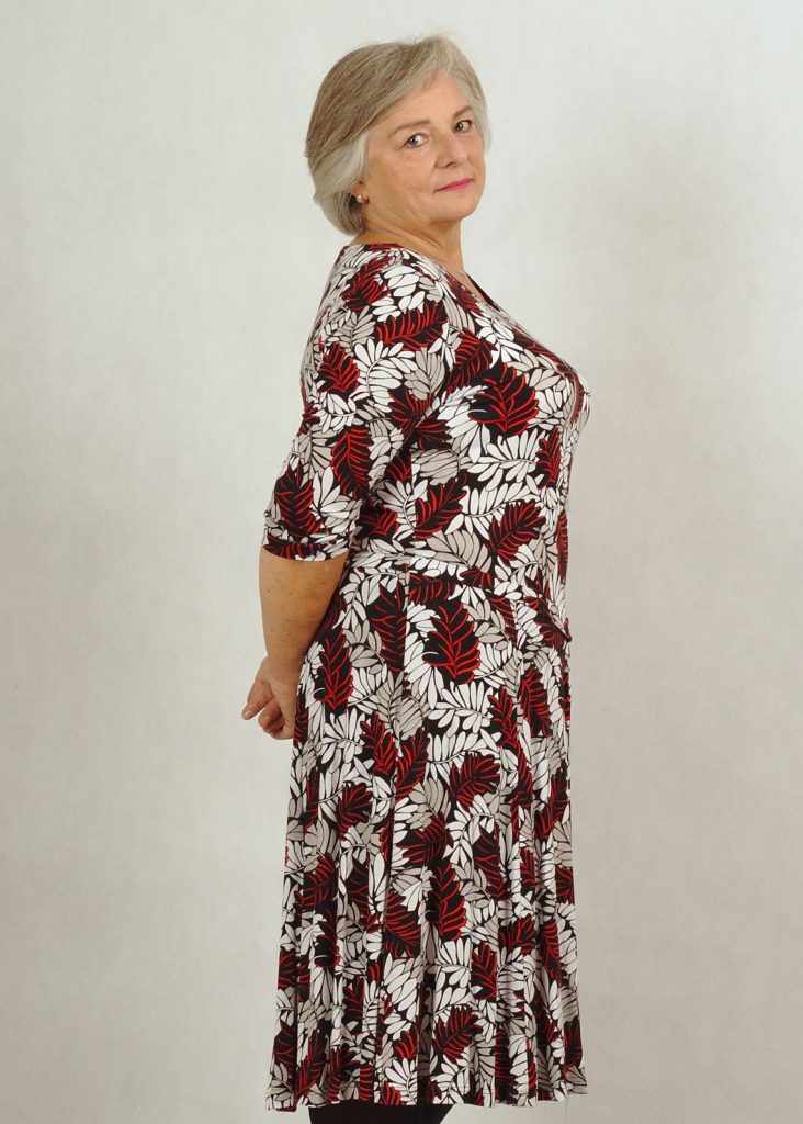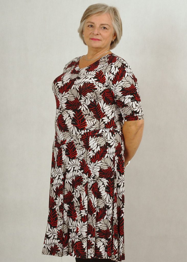 Sukienka uszyta w rozmiarach standard i plus size.