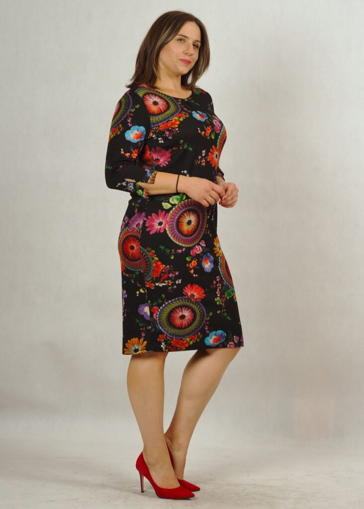 Sukienka uszyta została z dzianiny z domieszką wiskozy.