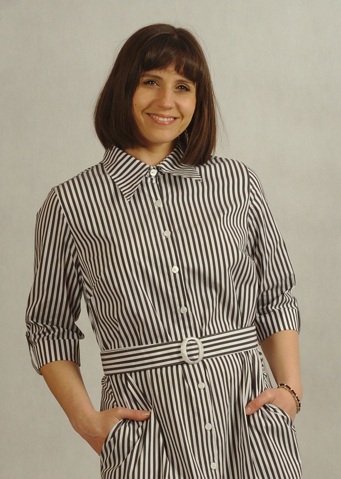 Modna sukienka w paski optycznie wysmukla sylwetkę, natomiast sukienka w grafitowe paski dodaje stylizacji nowoczesnego wyrazu.