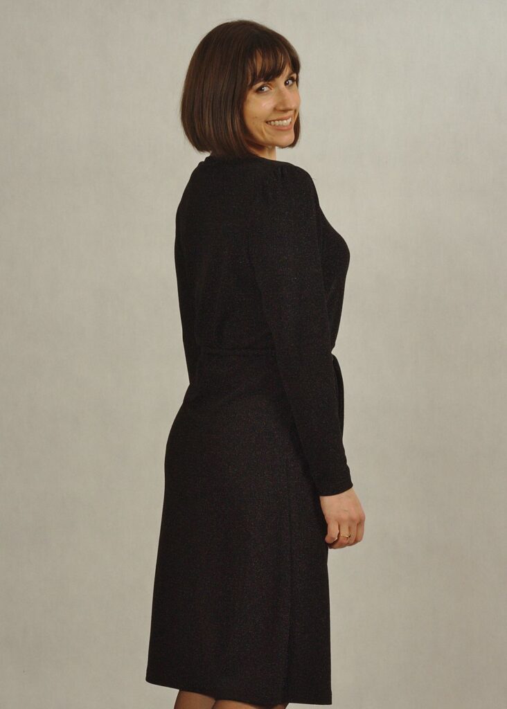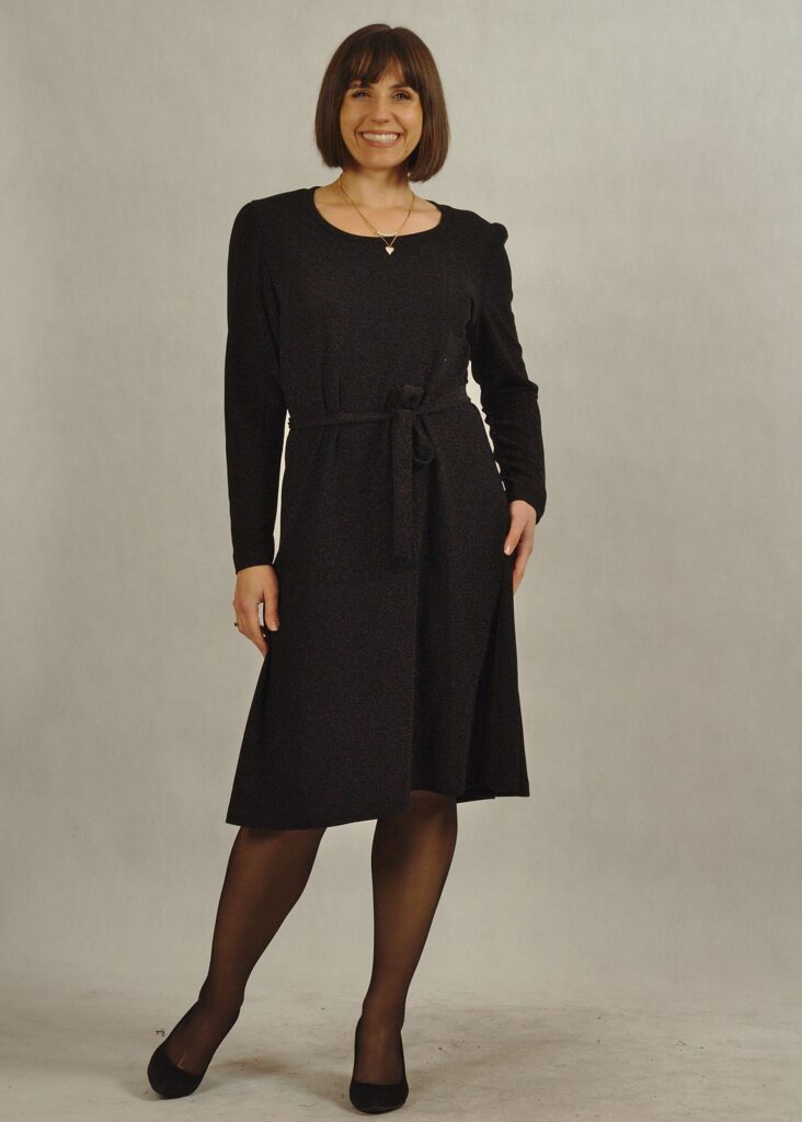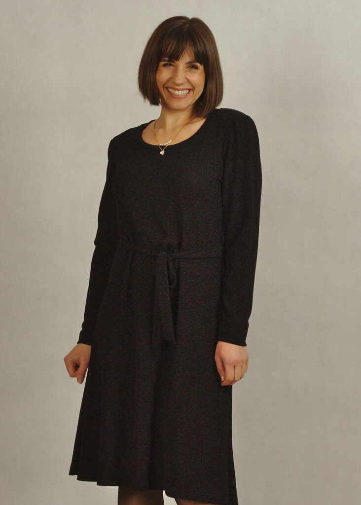 Zachwycaj blaskiem i kobiecym stylem w tej wyjątkowej czarnej sukience z brokatem.
