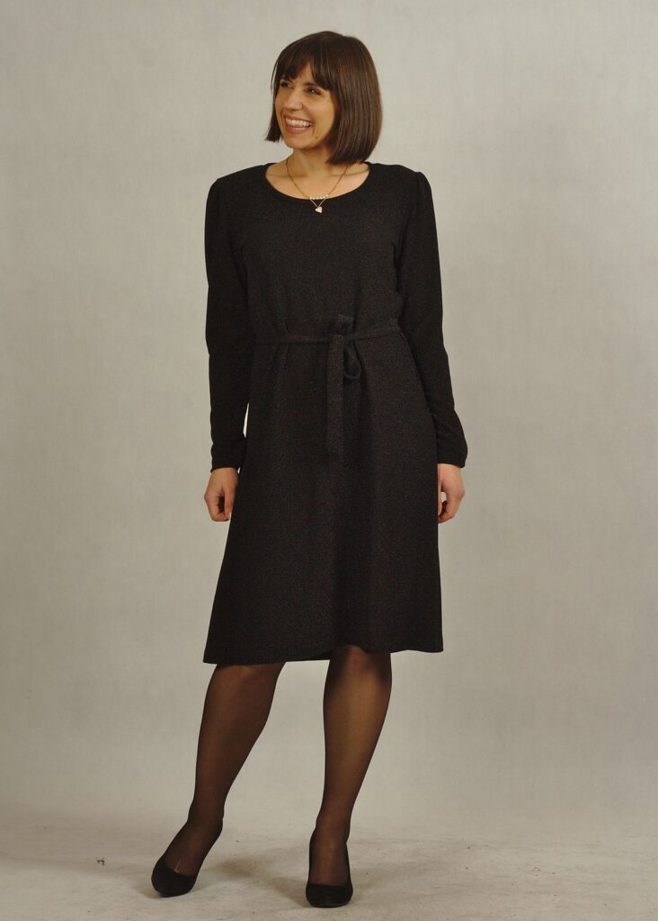 Elegancka czarna sukienka z brokatem i paskiem w talii /595/