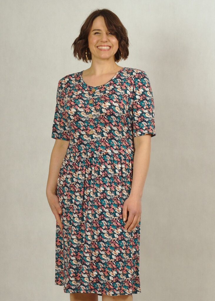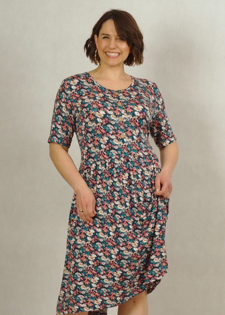 Sukienka z guzikami uszyta została z wiskozowej dzianiny najwyższej jakości, która daje ogromny komfort noszenia! (95% wiskoza!)