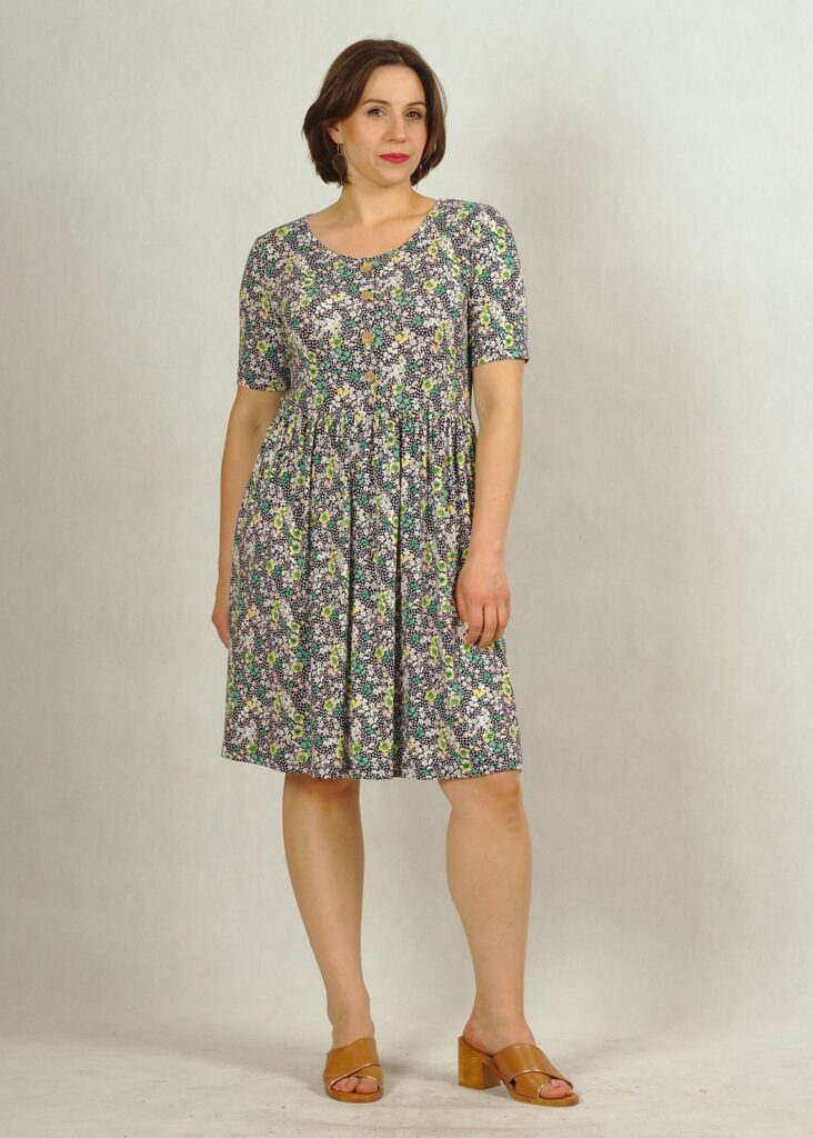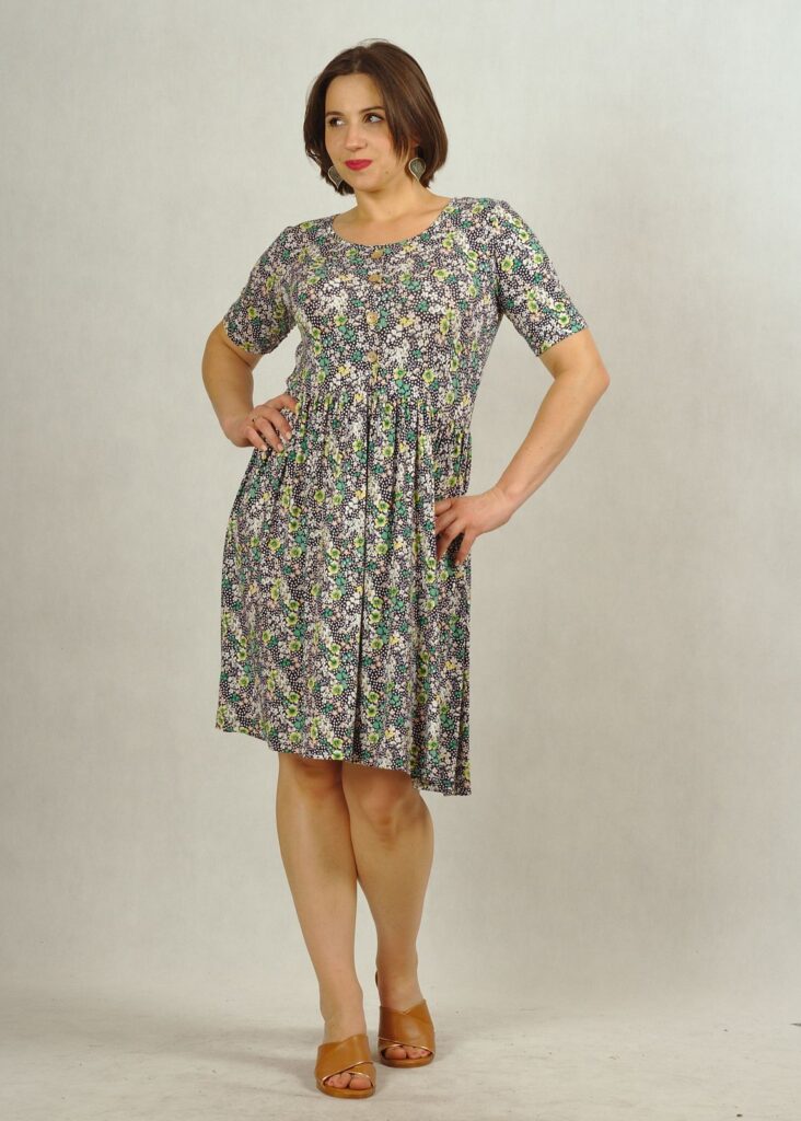 Sukienka z dzianiny w zielone kwiatki z guzikami plus size /685/