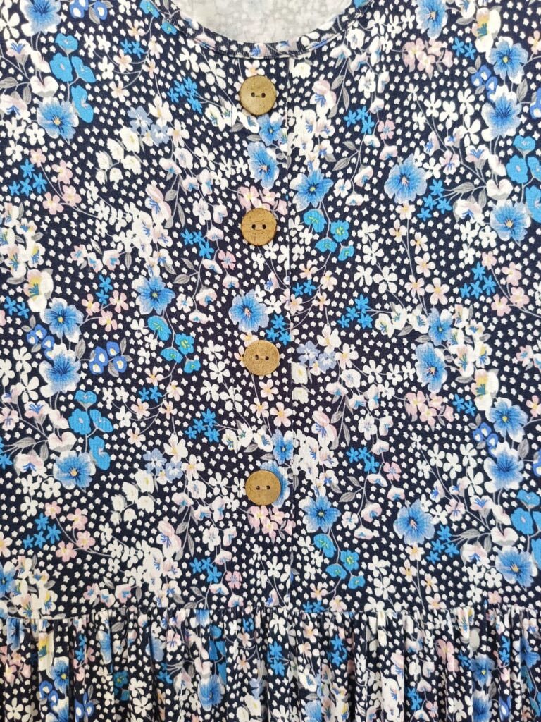 Kolorystycznie bardzo ciekawa – wielokolorowa łączka – sukienka w niebieskie kwiatki.*