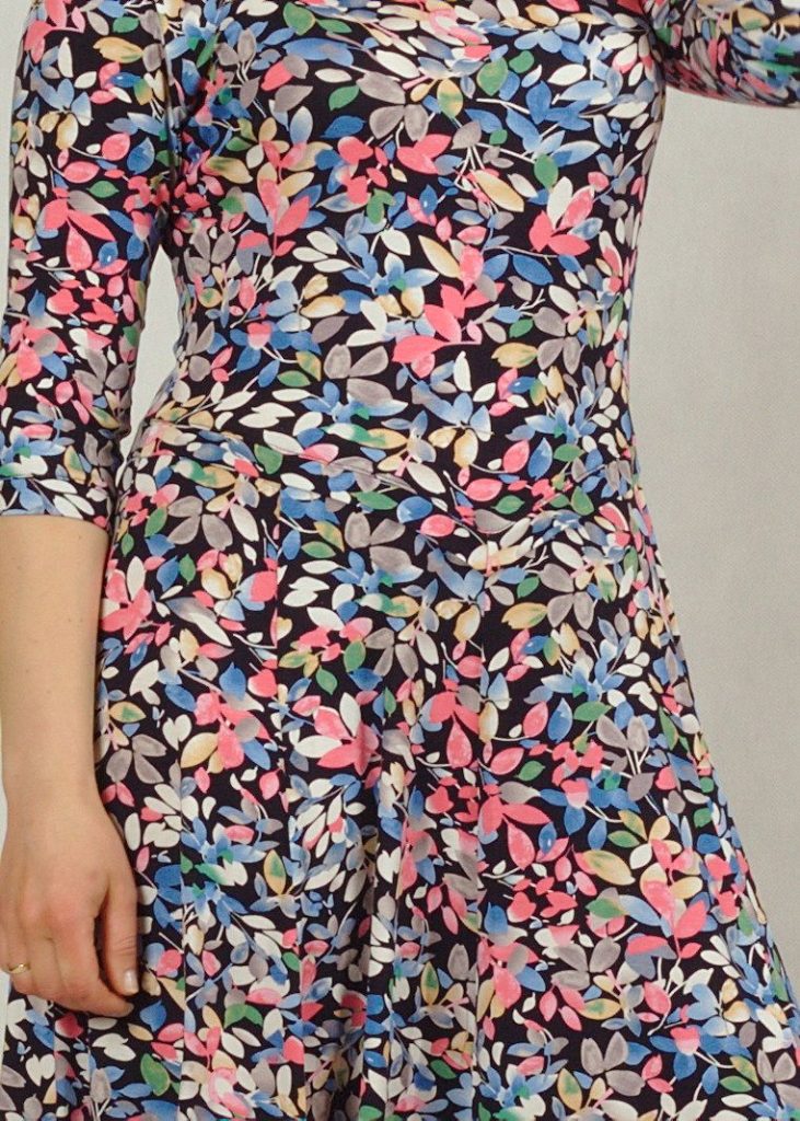 Niespotykany wzór materiału w kolorowe listeczki, pozwoli poczuć Ci się oryginalnie i wyjątkowo!