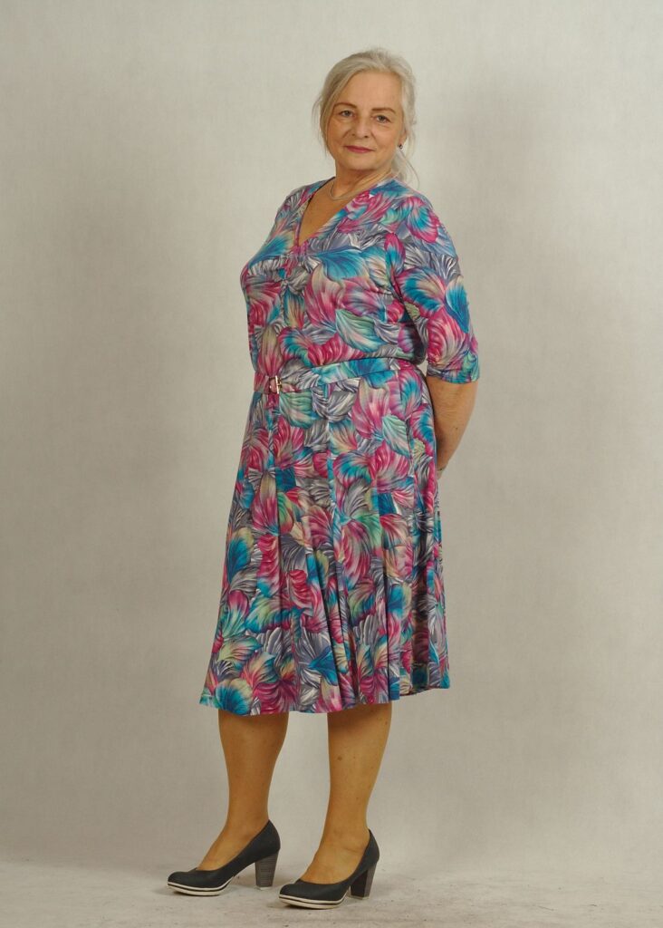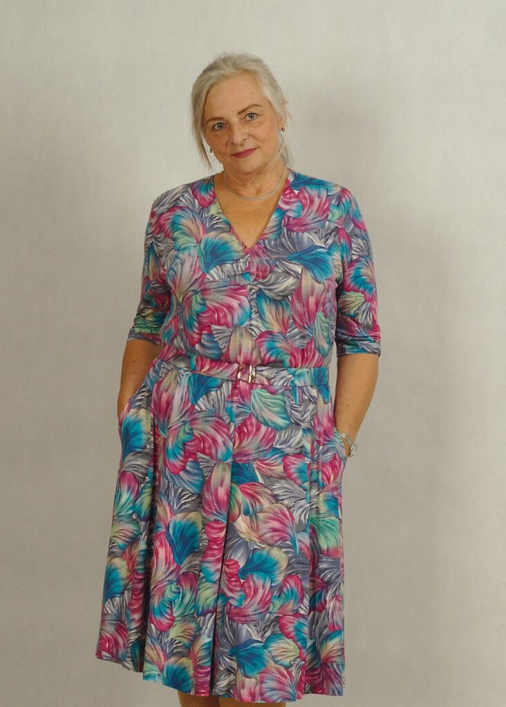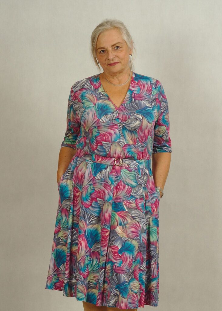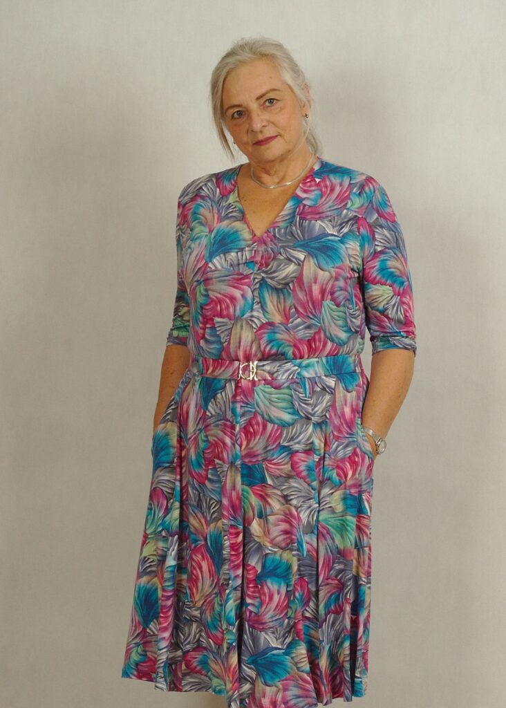 Sukienka wielokolorowa we wzory to propozycja dla miłośniczek oryginalnej mody damskiej.