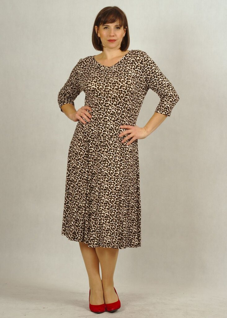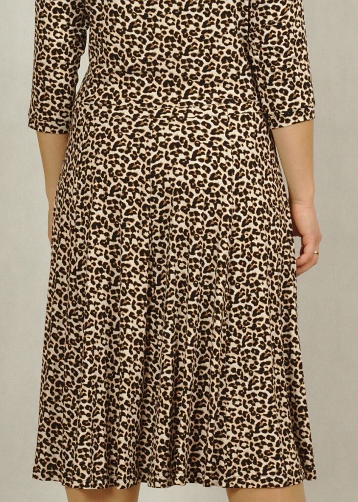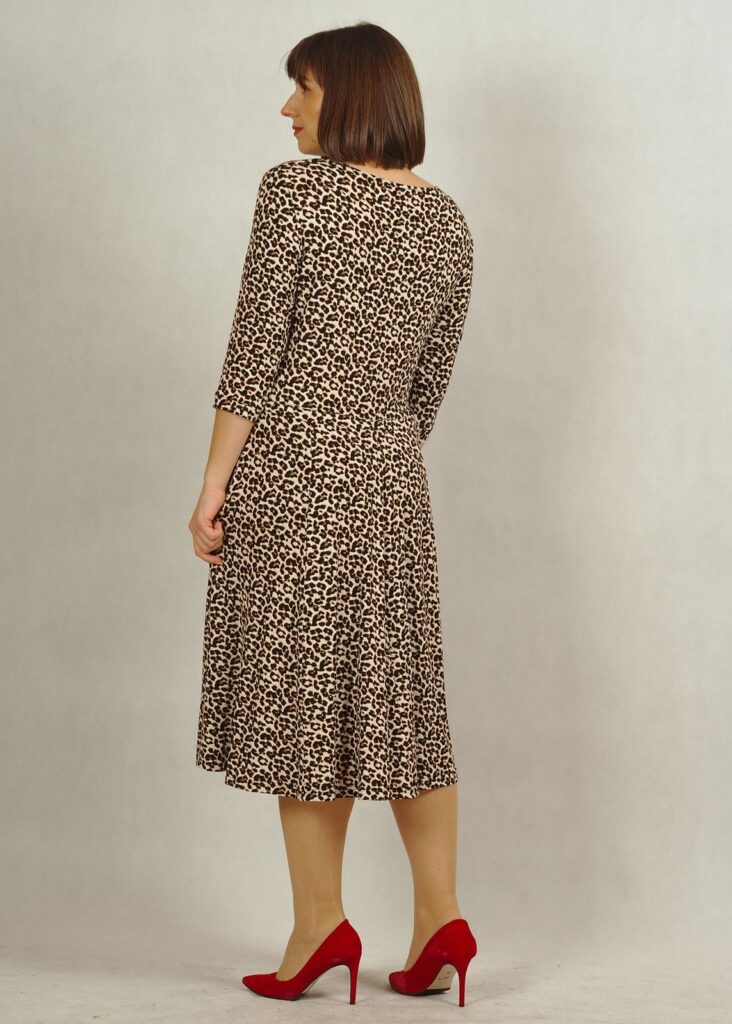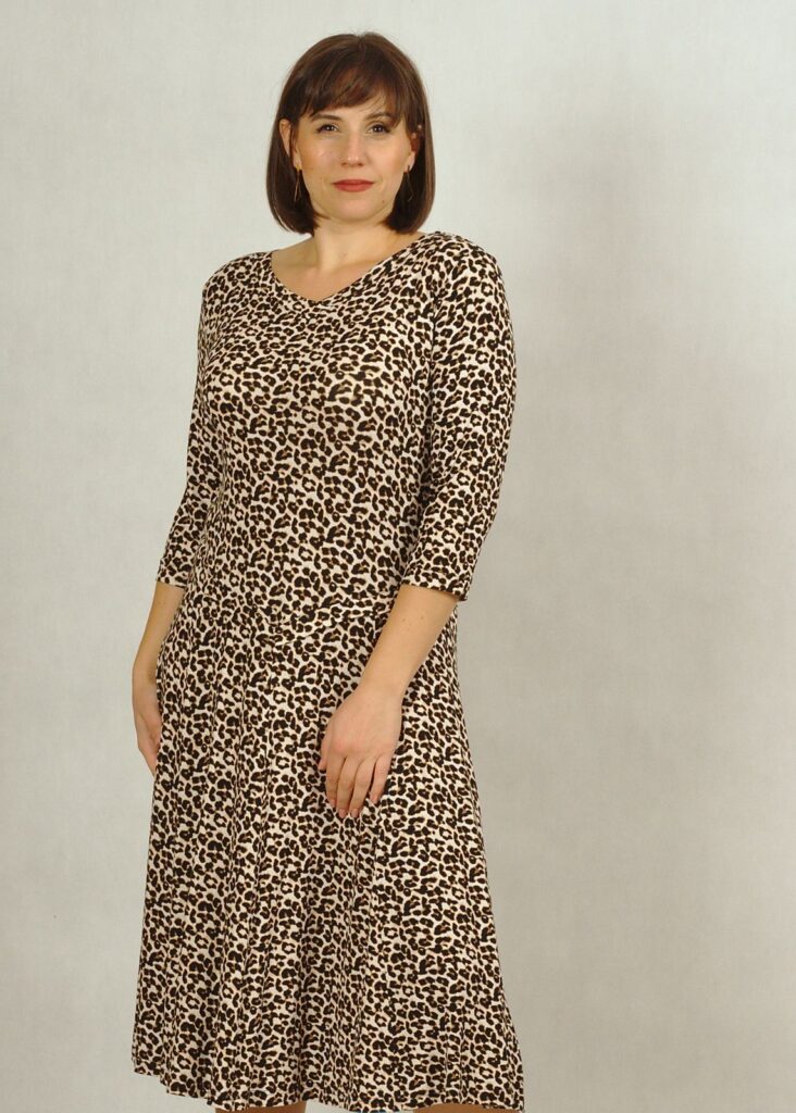 Sukienka beżowa w brązową panterkę – ponadczasowy wzór – to kolejna propozycja naszej bestsellerowej sukienki.