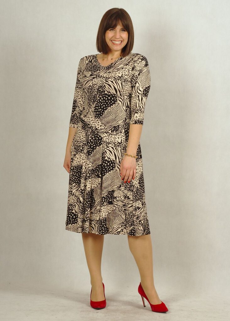 Sukienka beżowa z czarnym – ponadczasowy wzór – to kolejna propozycja naszej ukochanej sukienki.