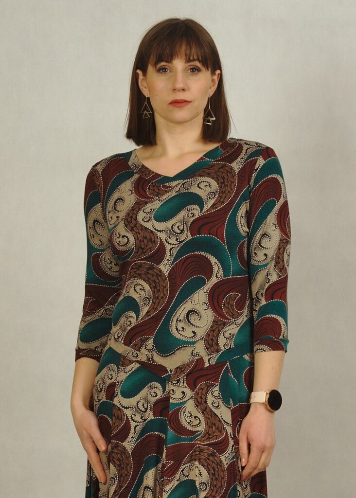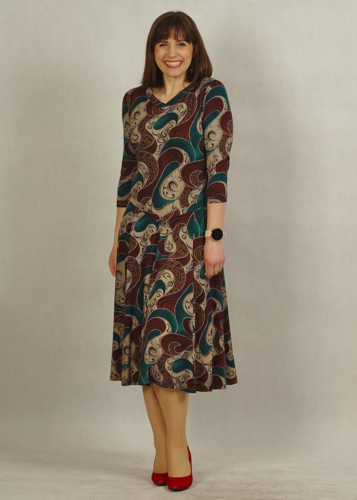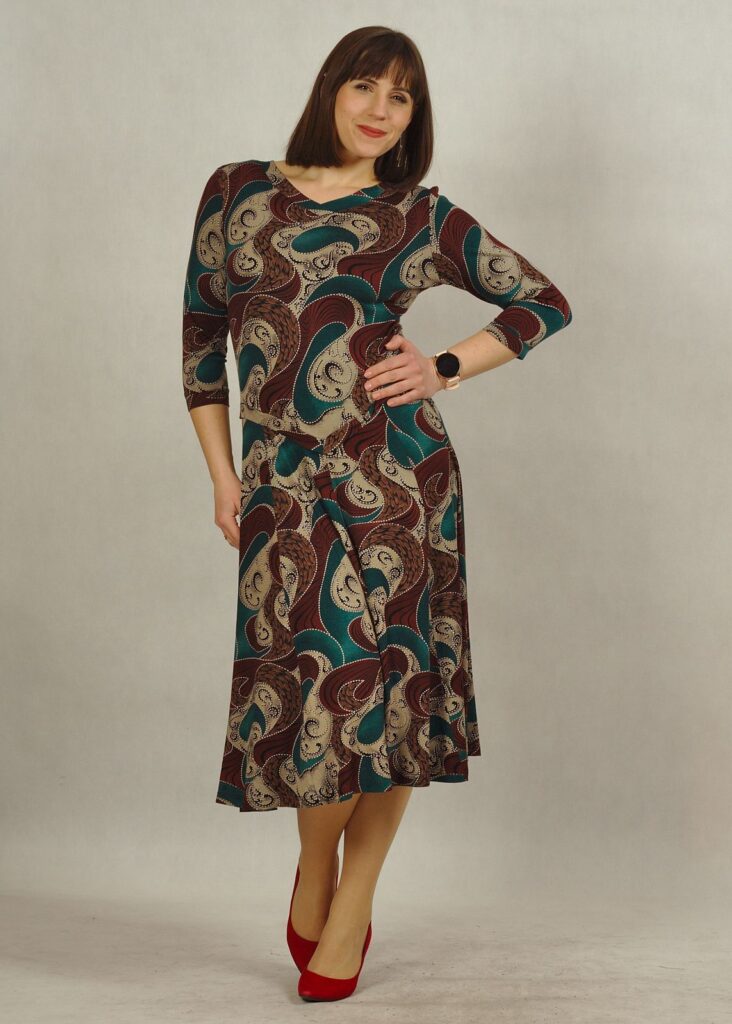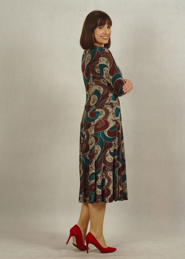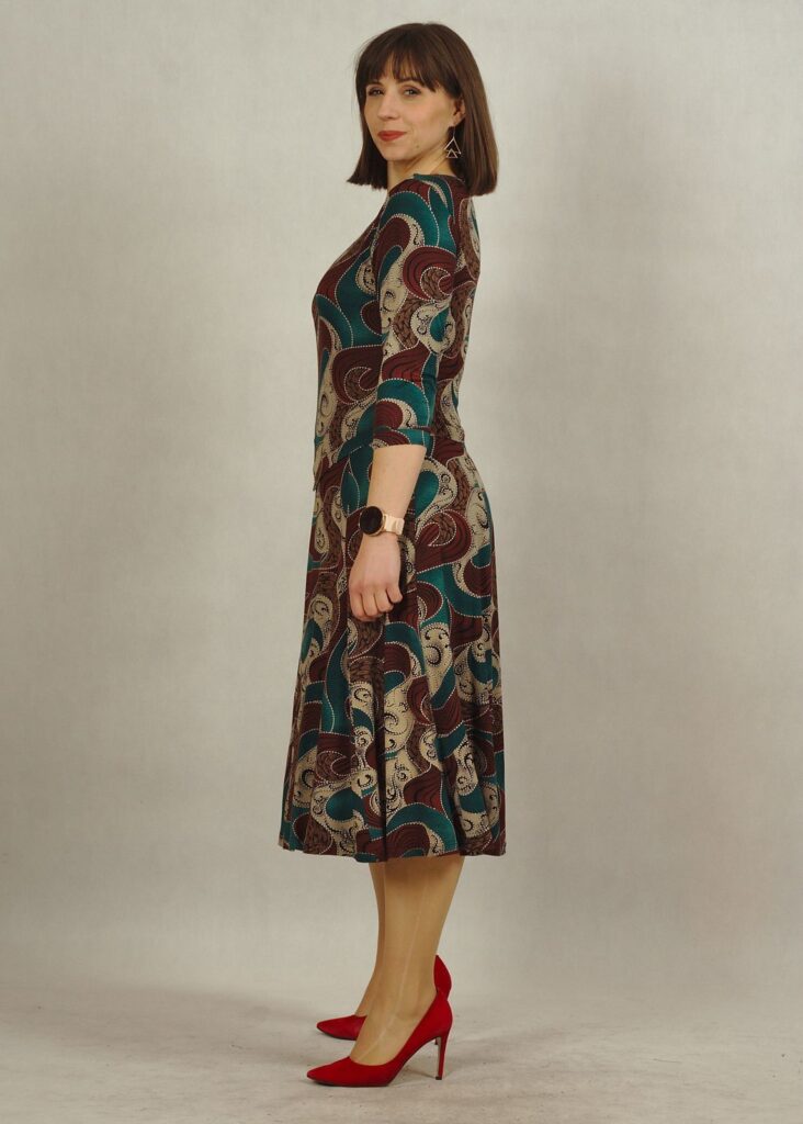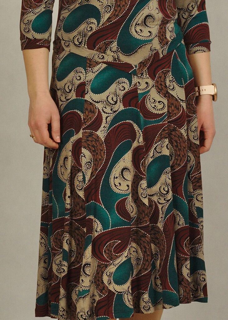 Ta sukienka we wzory paisley to idealna propozycja na co dzień dla kobiet ceniących wygodę i styl.