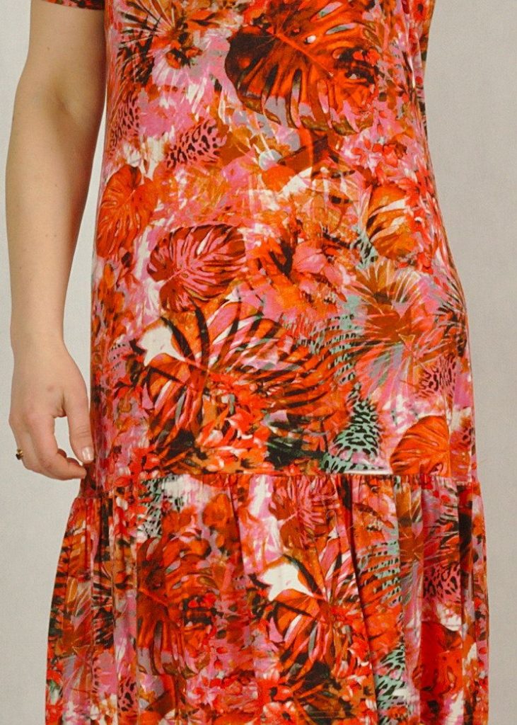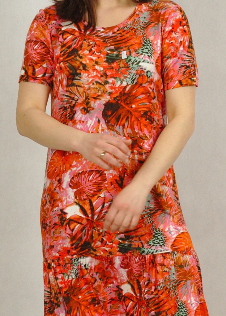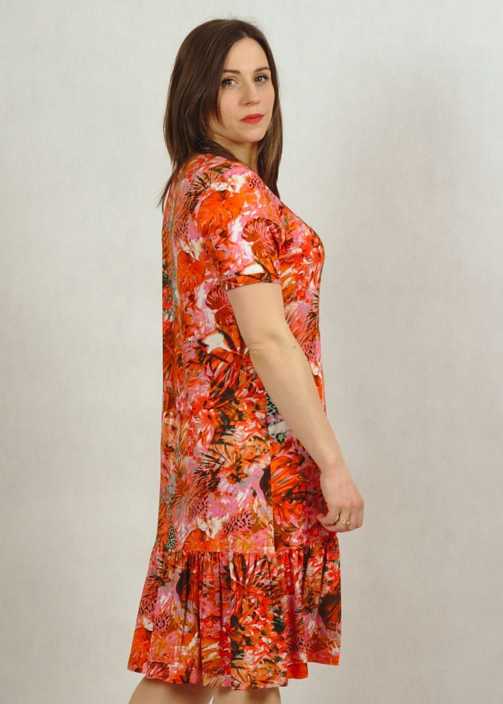 Sukienka ma bardzo dobry skład – wiskozę z elastanem.