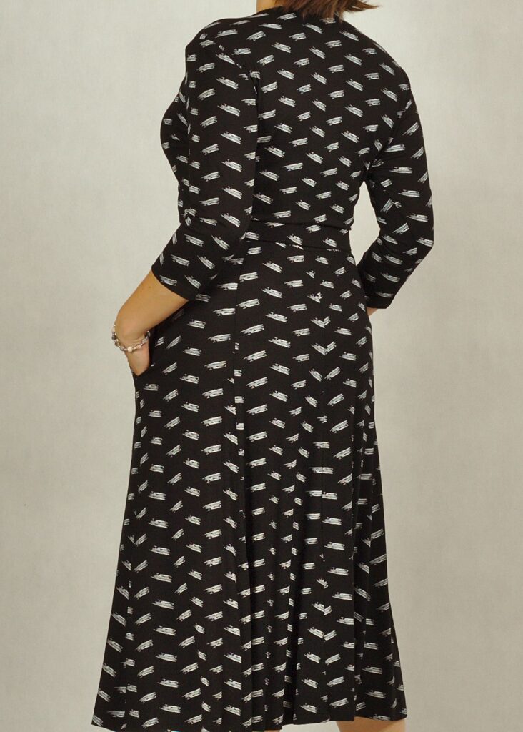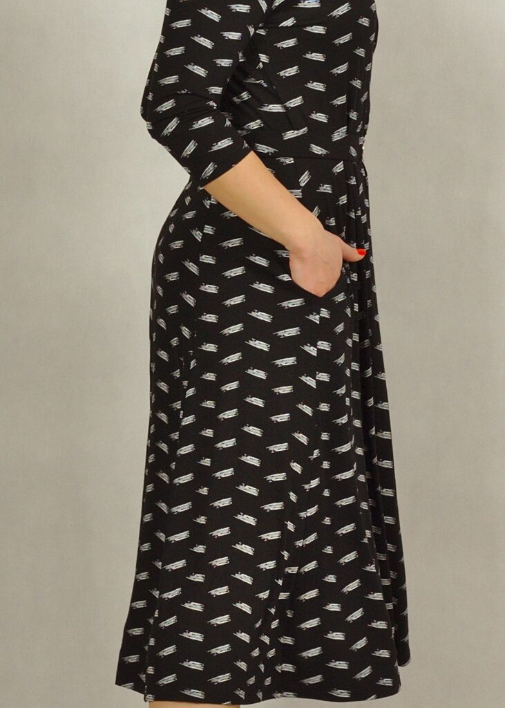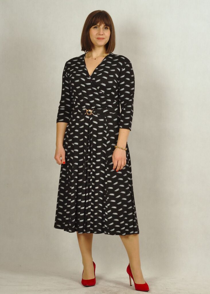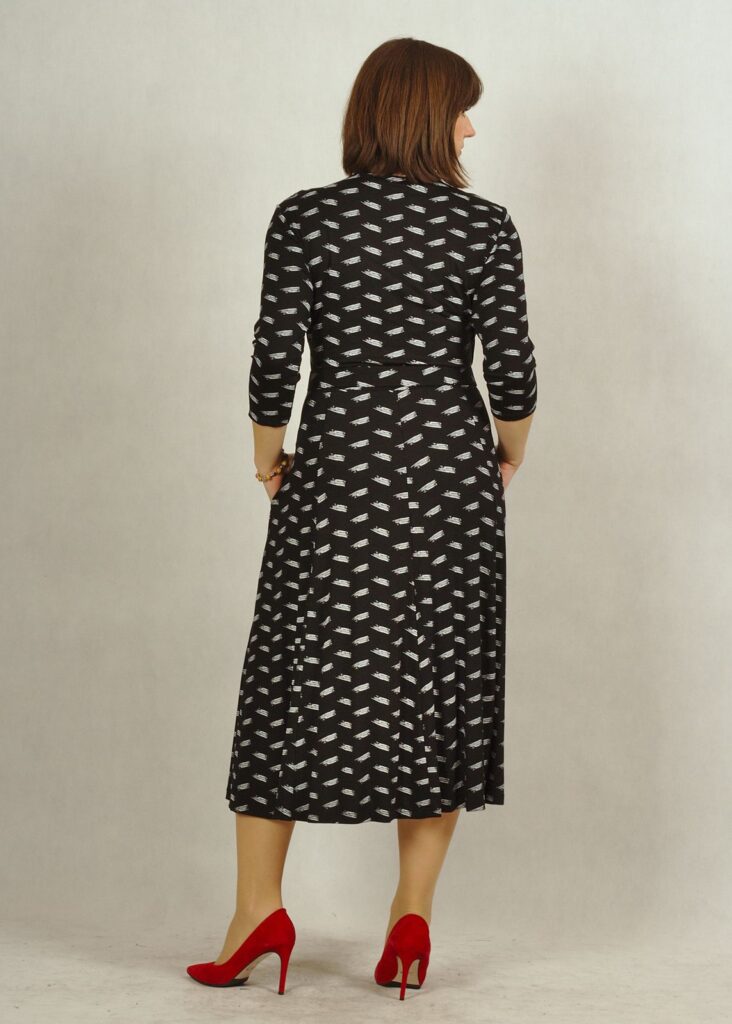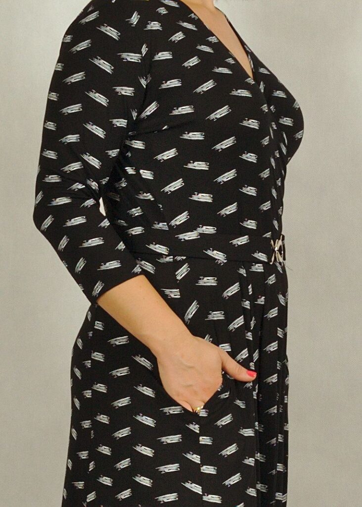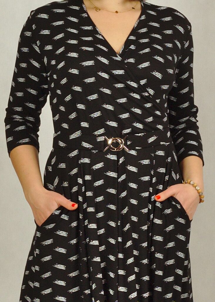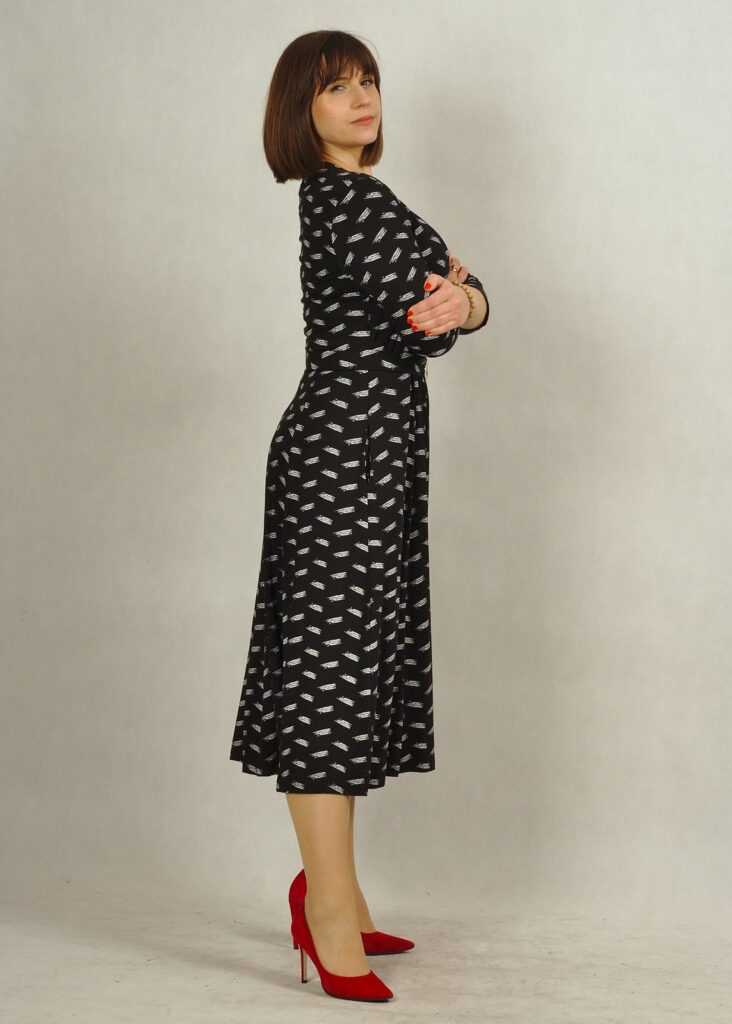 Świetnie uszyta sukienka z kopertowym dekoltem skradnie Twoje serce.