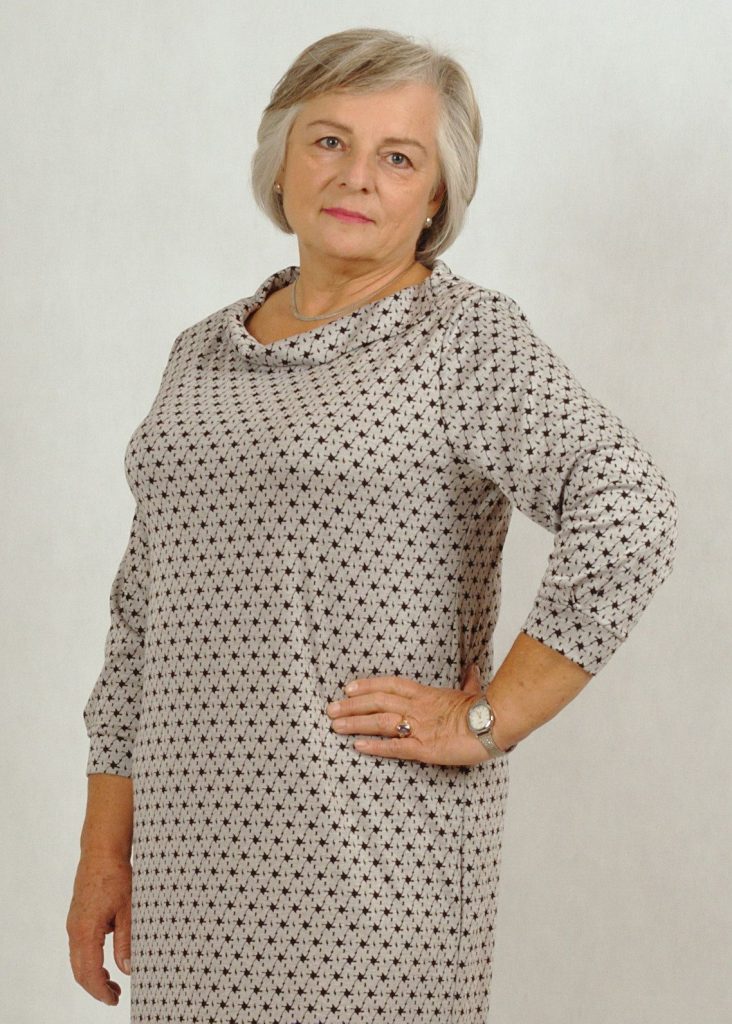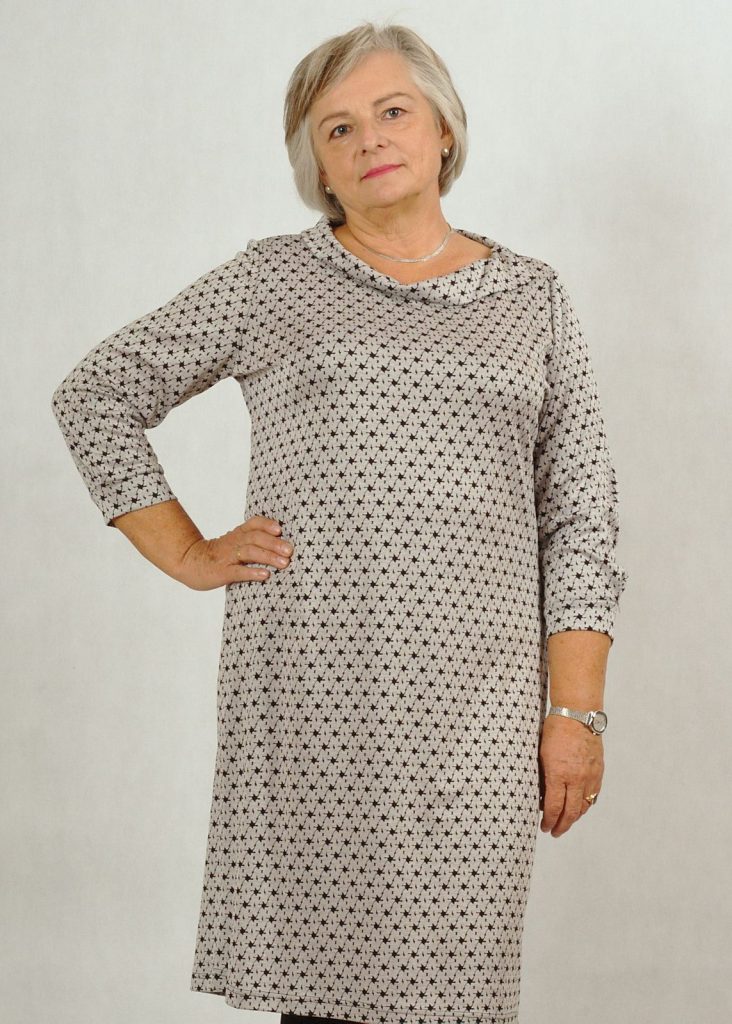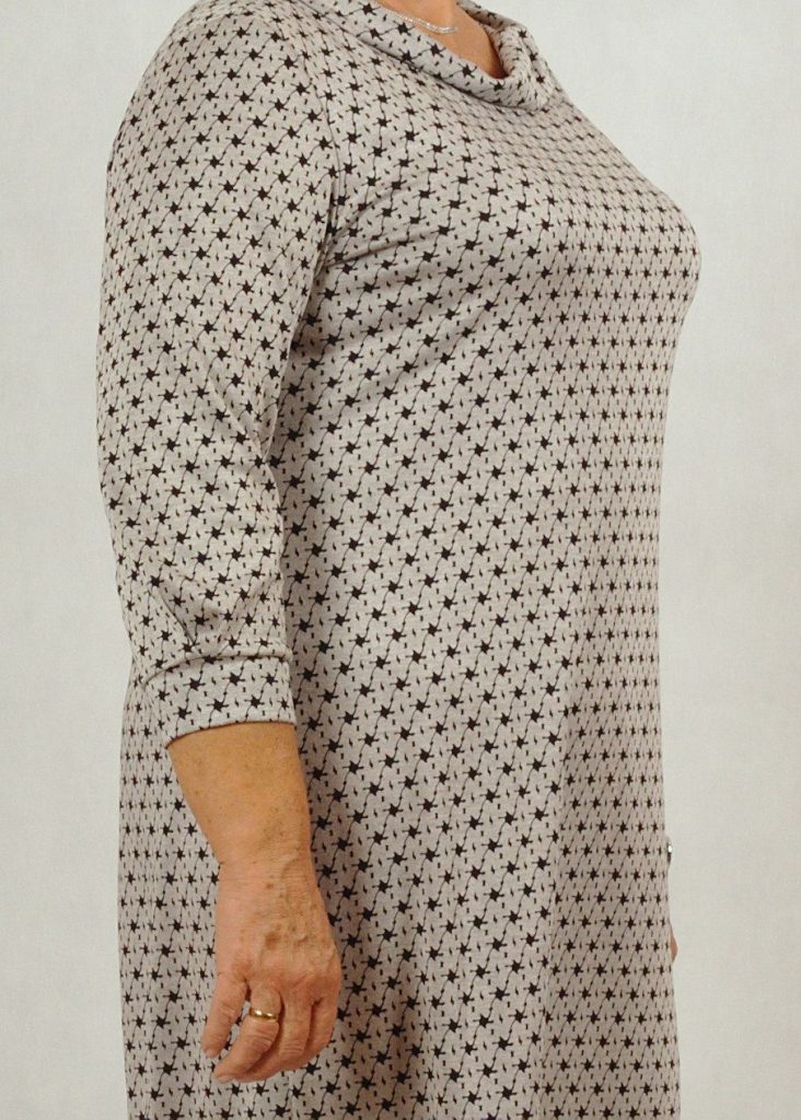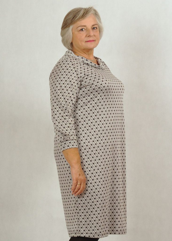 Sukienka uszyta jest z dzianiny z domieszką wiskozy, która jest bardzo przyjemna w użytkowaniu.