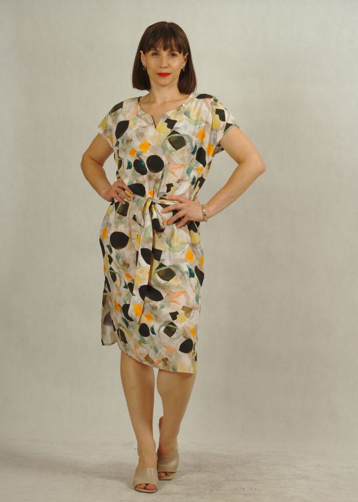 Stylowa i wygodna sukienka do kolan wykonana z przewiewnej tkaniny wiskozowej to must-have na ciepłe dni.
