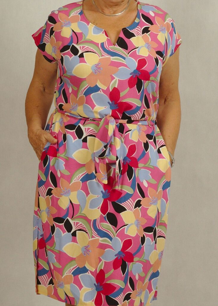 Ciekawa i komfortowa sukienka do kolan wykonana z przewiewnej tkaniny wiskozowej to nasz ulubieniec na ciepłe dni.