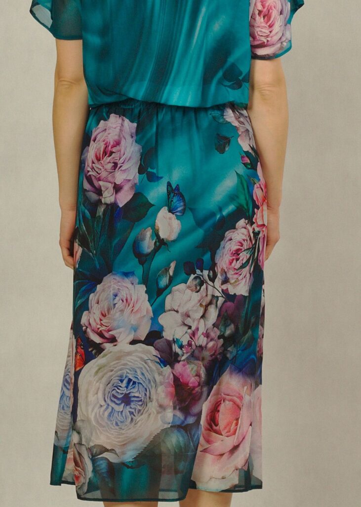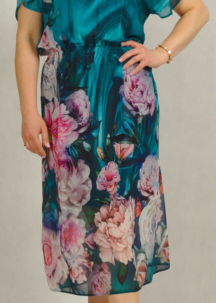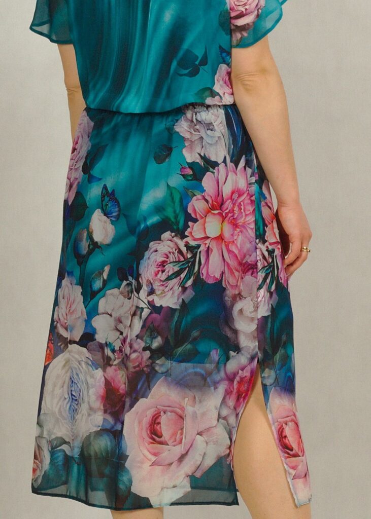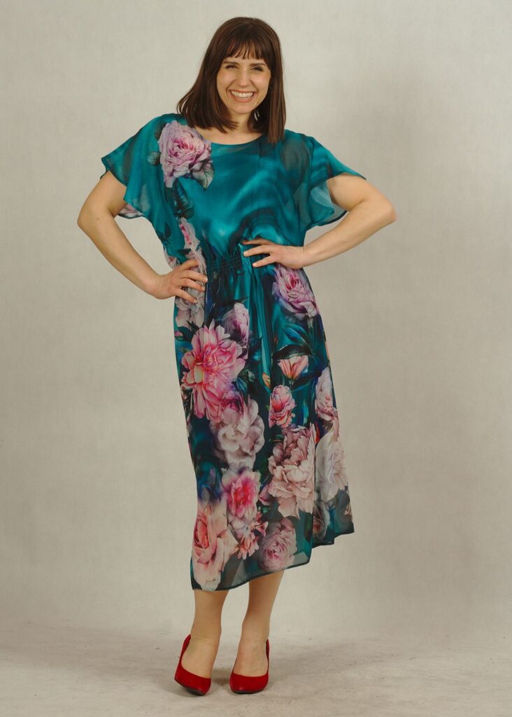 Dzięki wszytej gumce w talii, sukienka wspaniale się układa i podkreśla figurę lub ukrywa niedoskonałości.