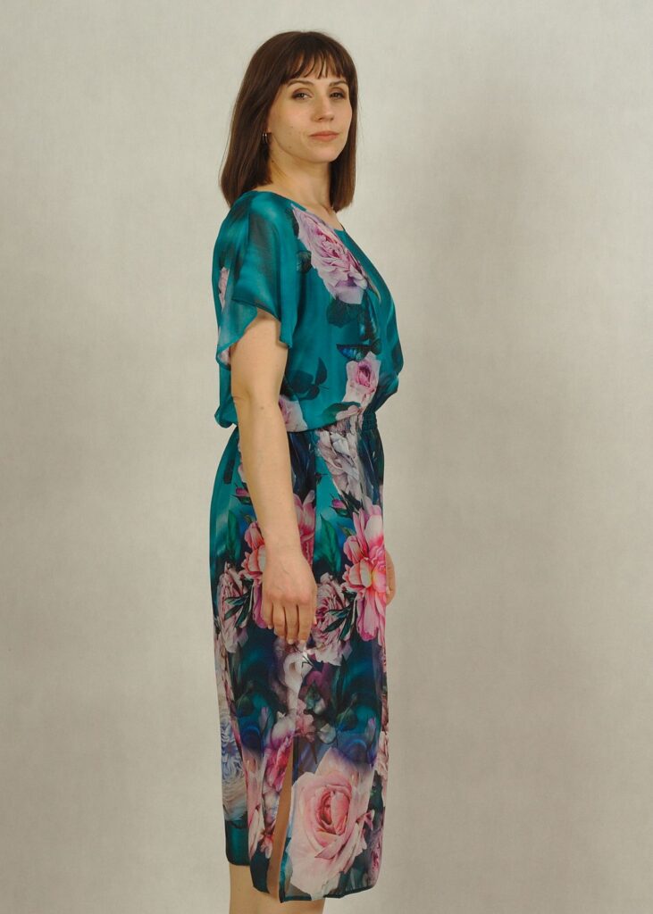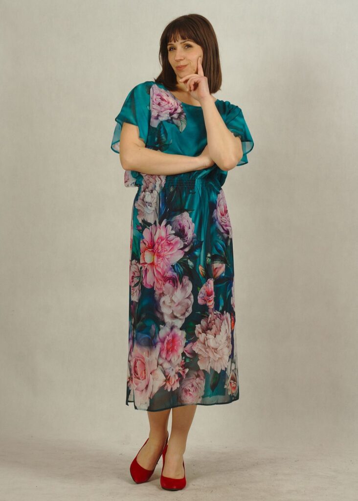 Sukienka uszyta z bardzo eleganckiego materiału – szyfonu.