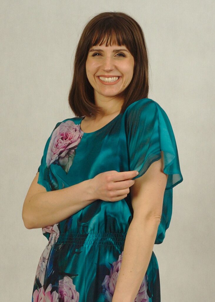 Sukienka ma piękny zielony* kolor i świetny wzór kwiatowy.