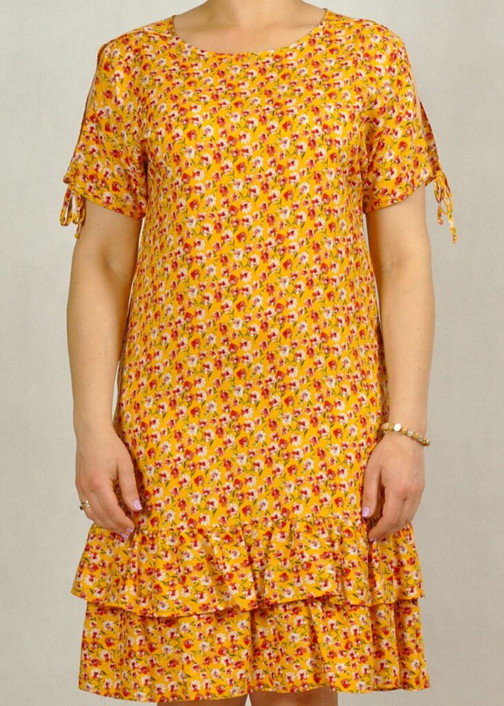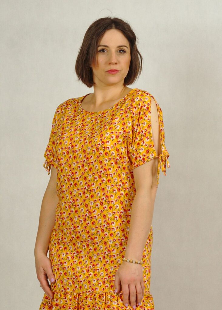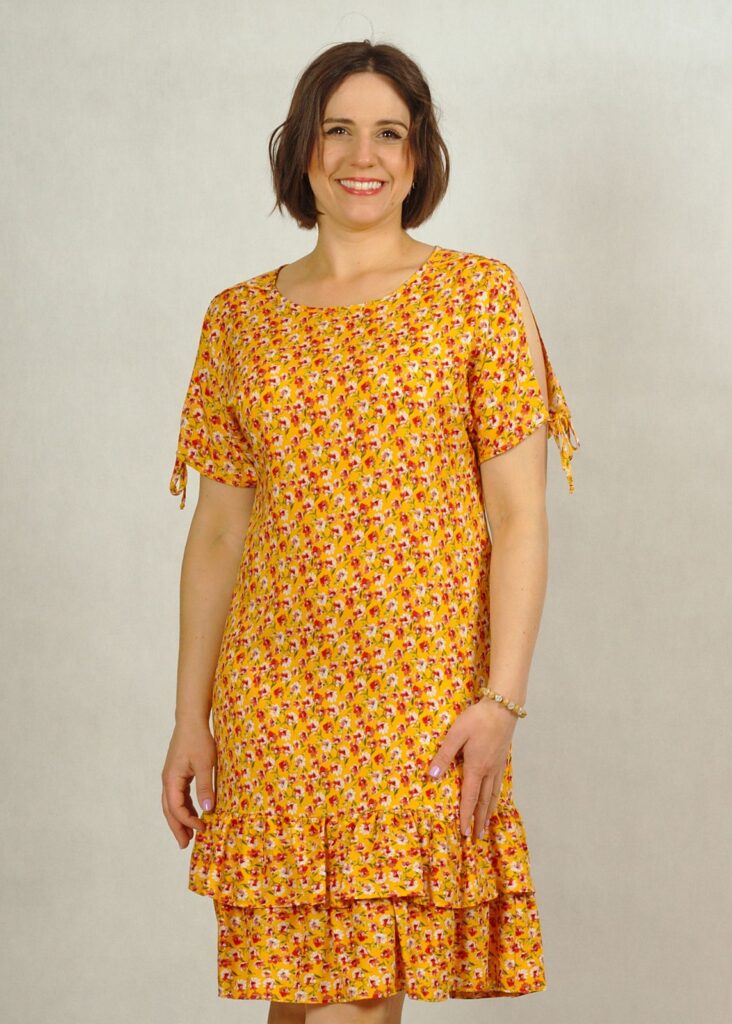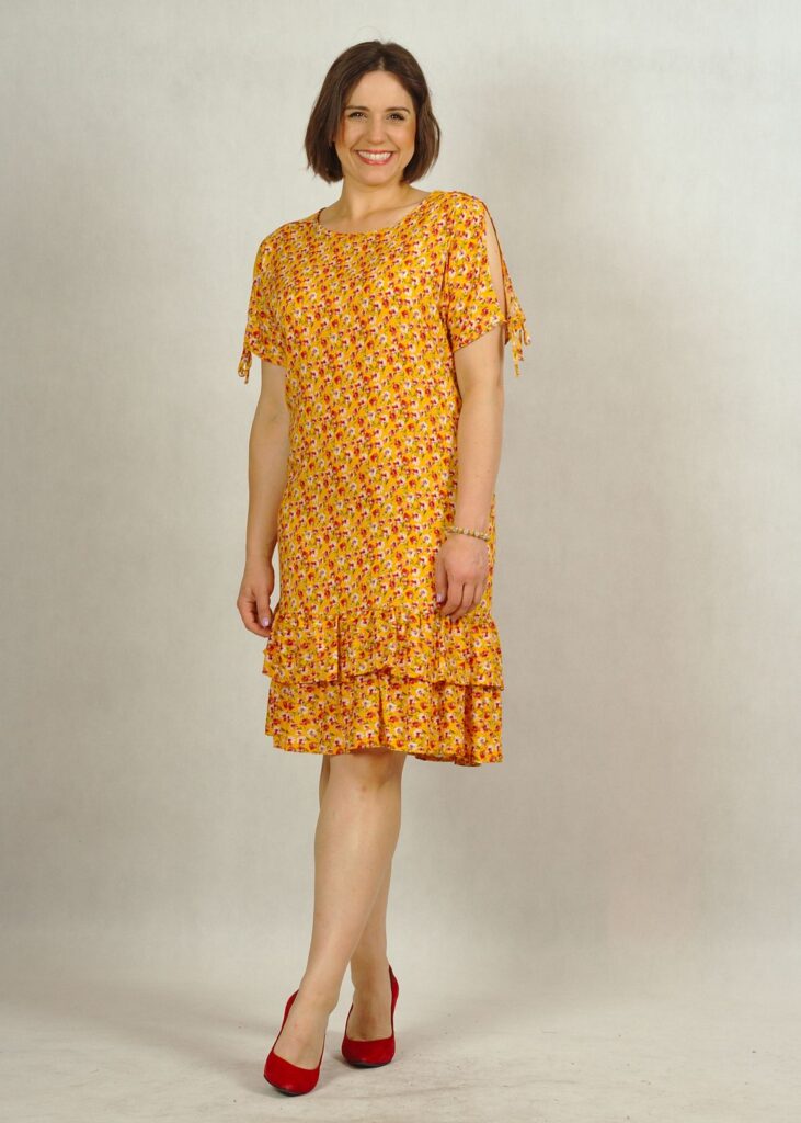 Sukienka żółta w kwiatki – to ponadczasowy print, który pasuje do różnych okazji.