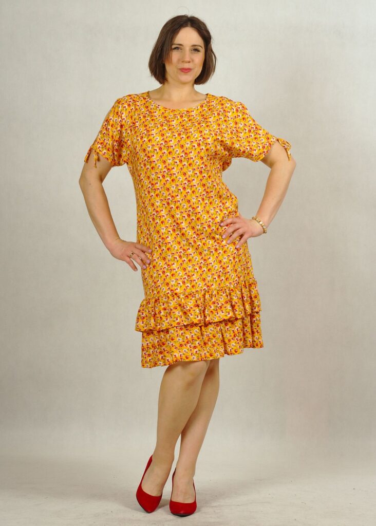 Sukienka z falbanką podwójną u dołu. Dzięki niej Twoja sylwetka wyglądać będzie świetnie!