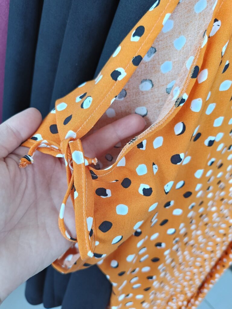 Sukienka z rozcięciem na ramieniu posiada też oryginalne wiązania przy rękawach. Reguluj siłę ich wiązania. Bardzo subtelnie odkryje Twoje ramiona!