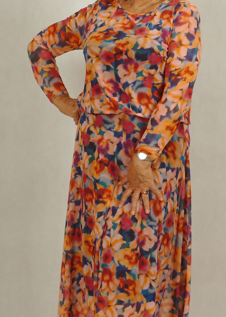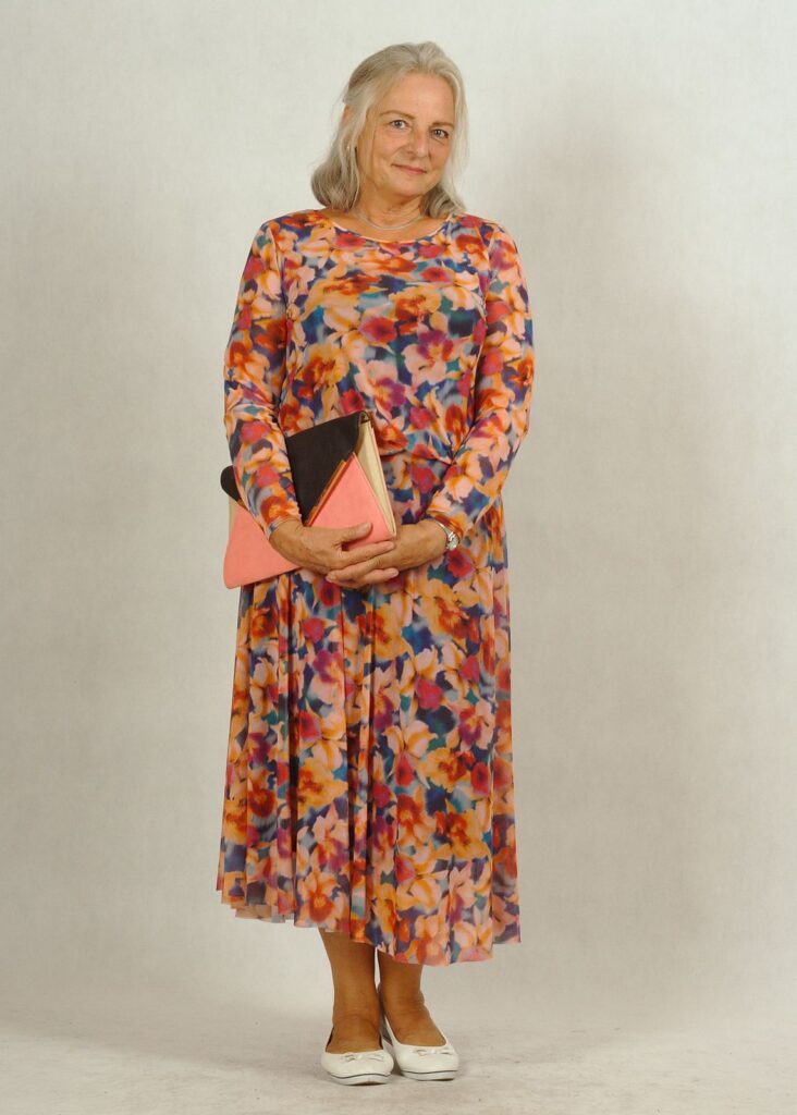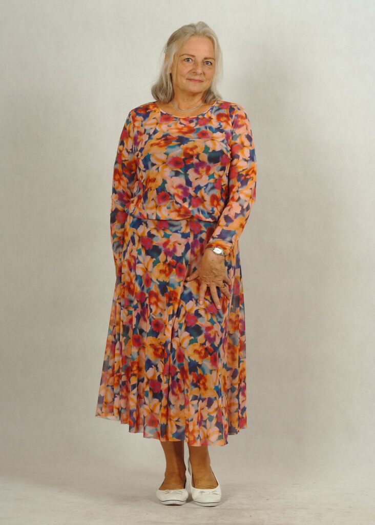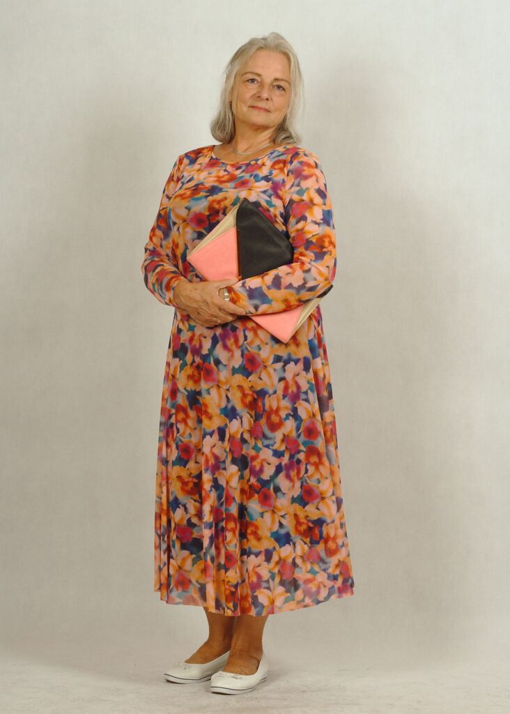Sukienka się nie gniecie, idealnie maskuje mankamenty ciała.
