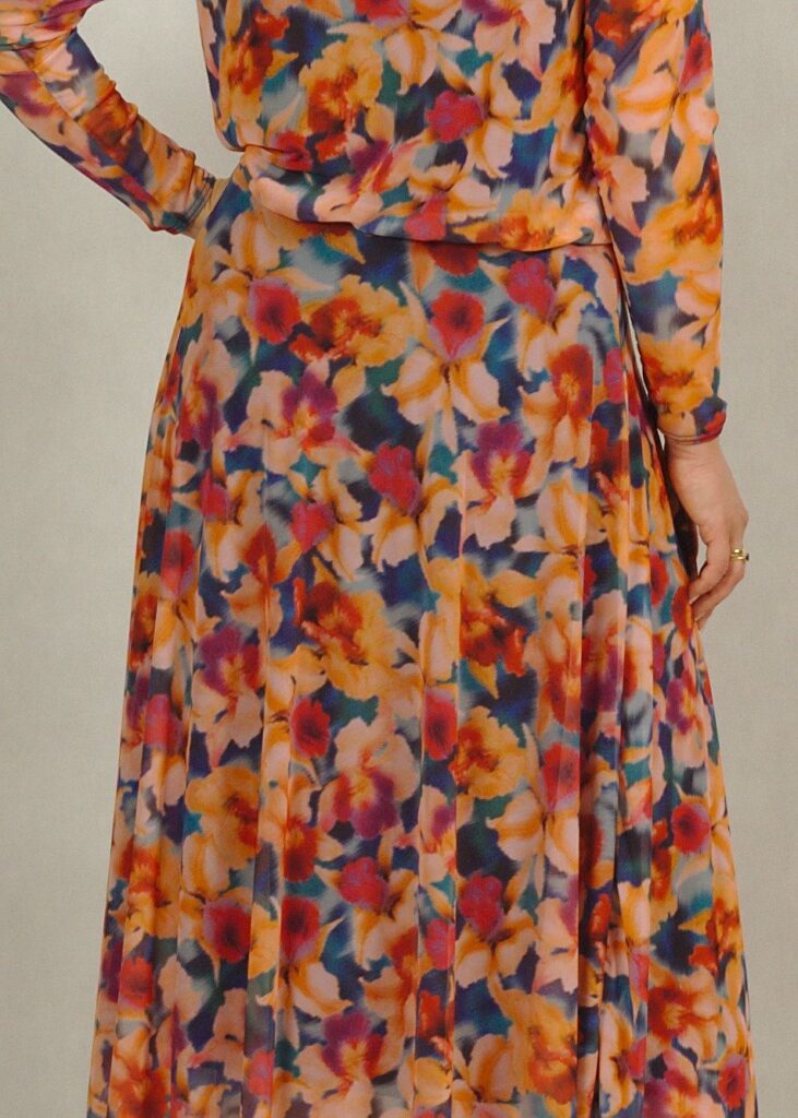Suknia z siatki z podszewką w łososiowe kwiaty /618/