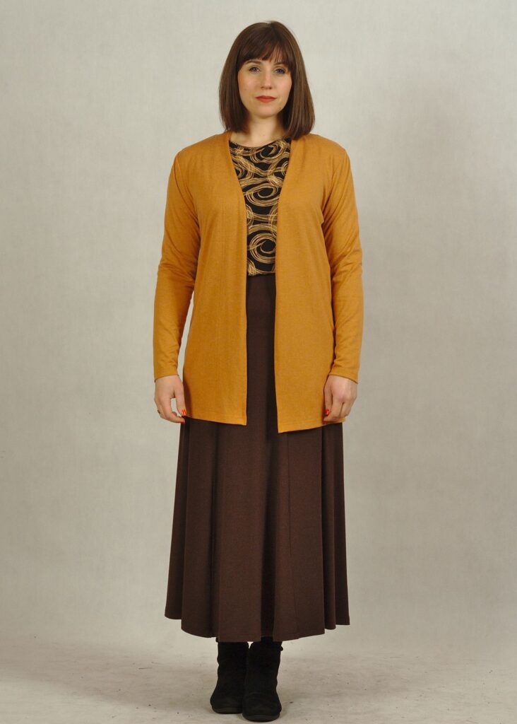 Kardigan miodowy niezapinany to uniwersalny wybór na wszelakie okazje.