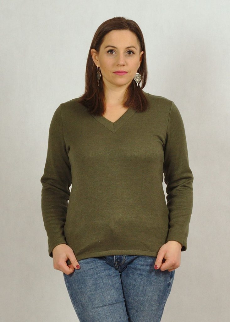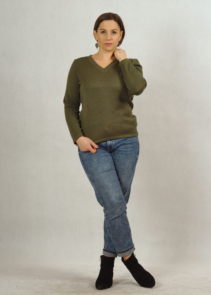 Rękaw sweterka jest wszyty prosto, dlatego dopasuj go do swojego rozmiaru, chyba, że lubisz sweterki oversize – wówczas wybierz rozmiar większy.
