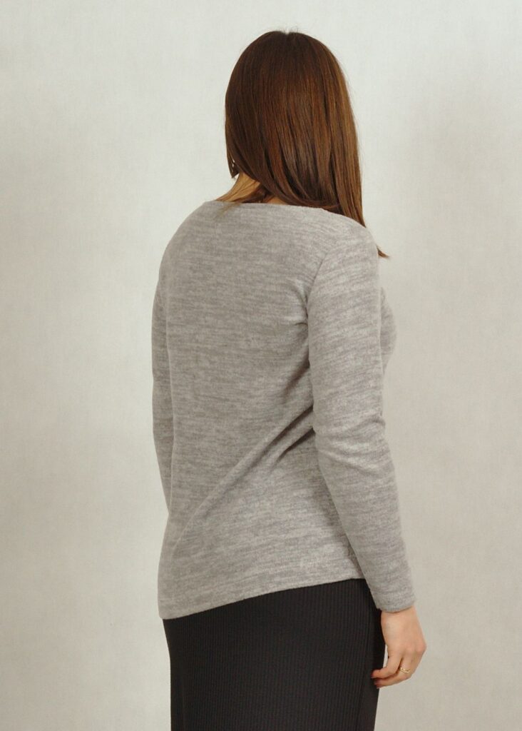 Sweterek uszyty jest z bardzo przyjemnej w dotyku i ciepłej dzianiny z dodatkiem wiskozy.