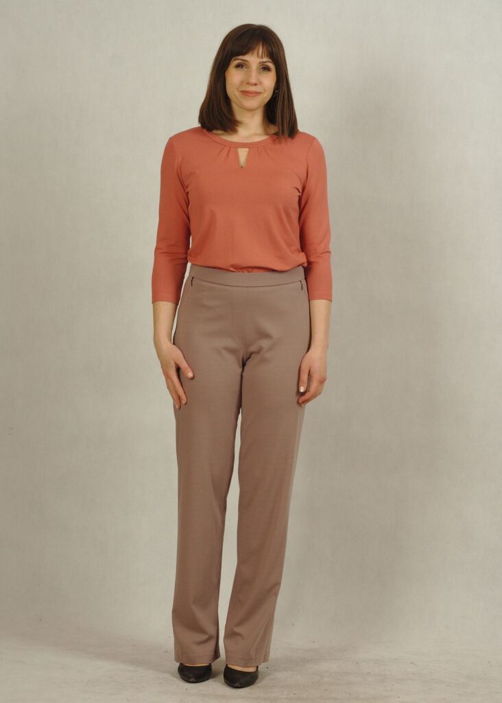 Szarobeżowe spodnie z szeroką nogawką – wygodne, dzianinowe spodnie na gumce z kieszeniami