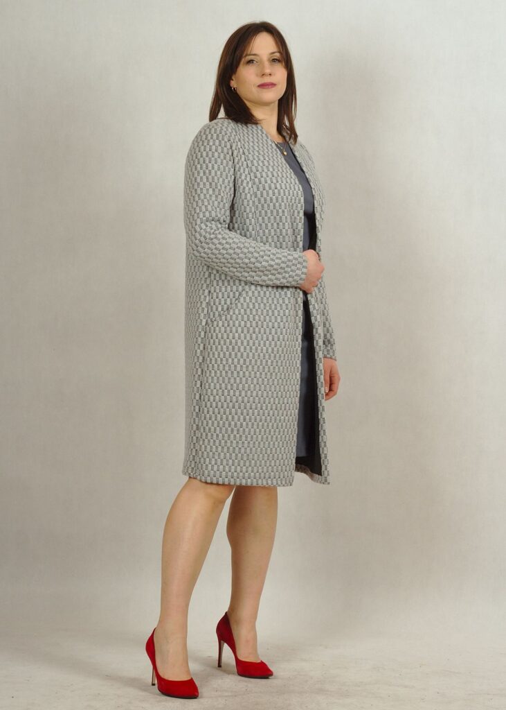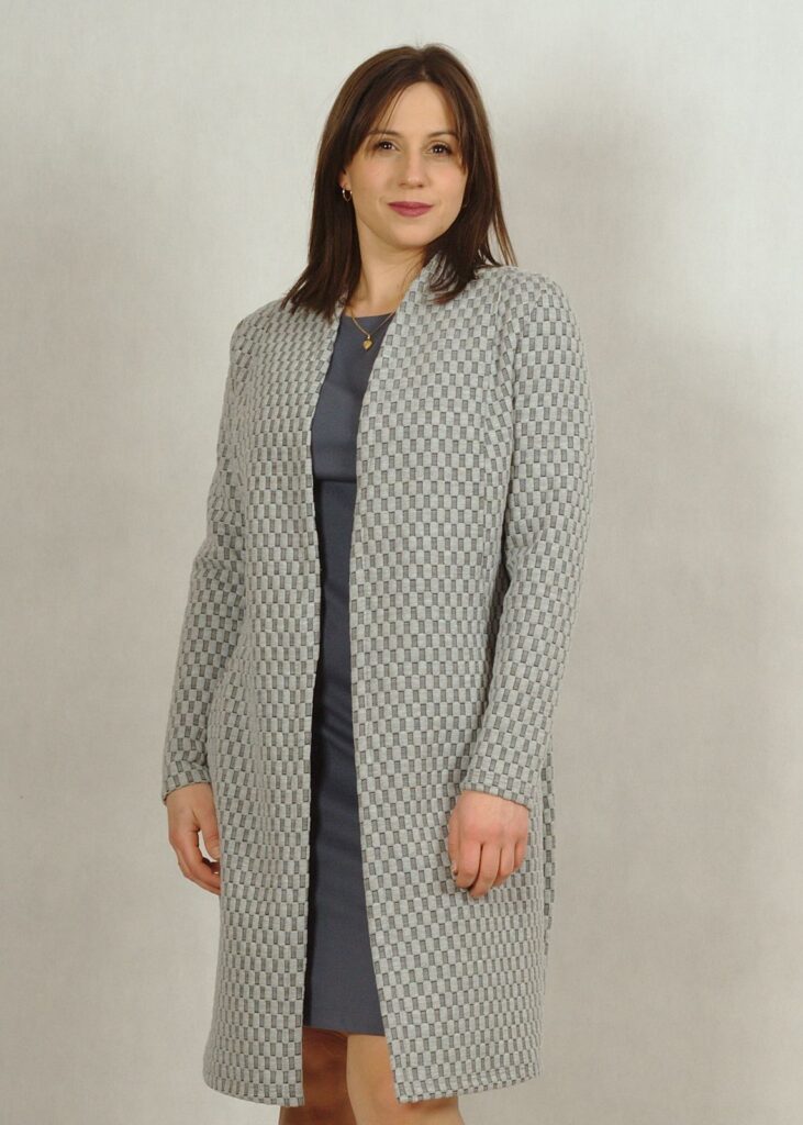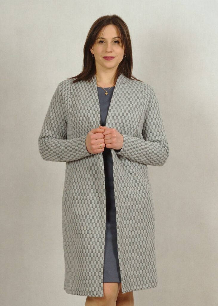 Kardigan pełni funkcję ozdobnego płaszcza.