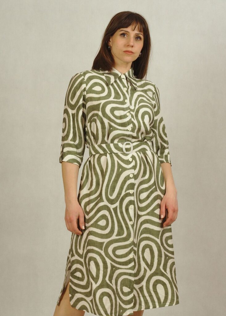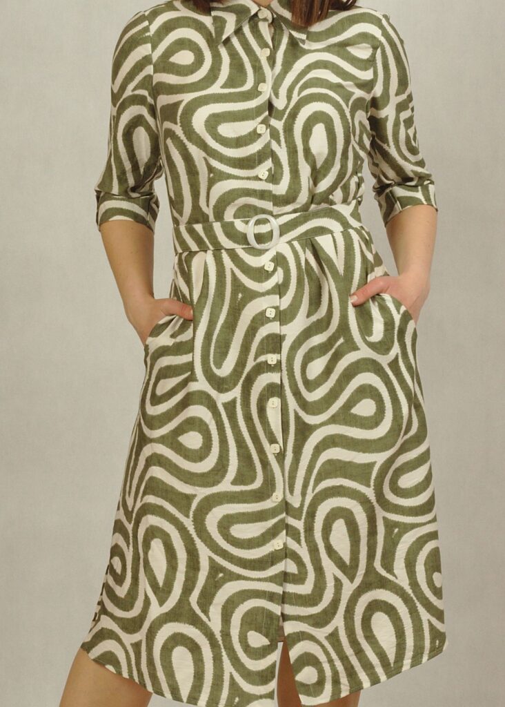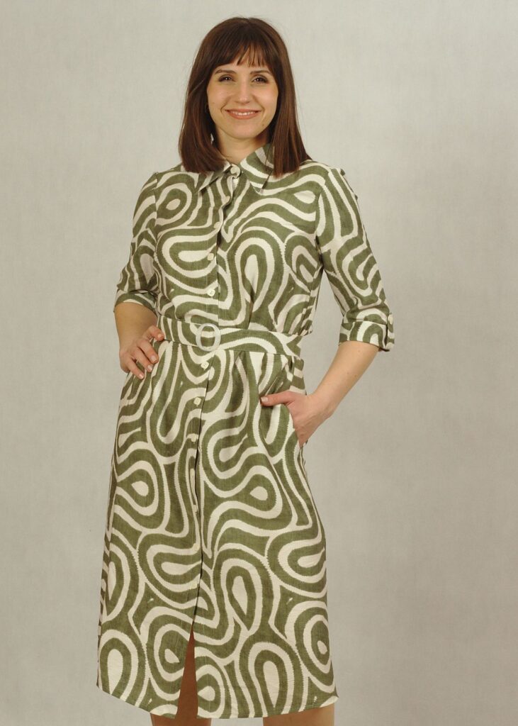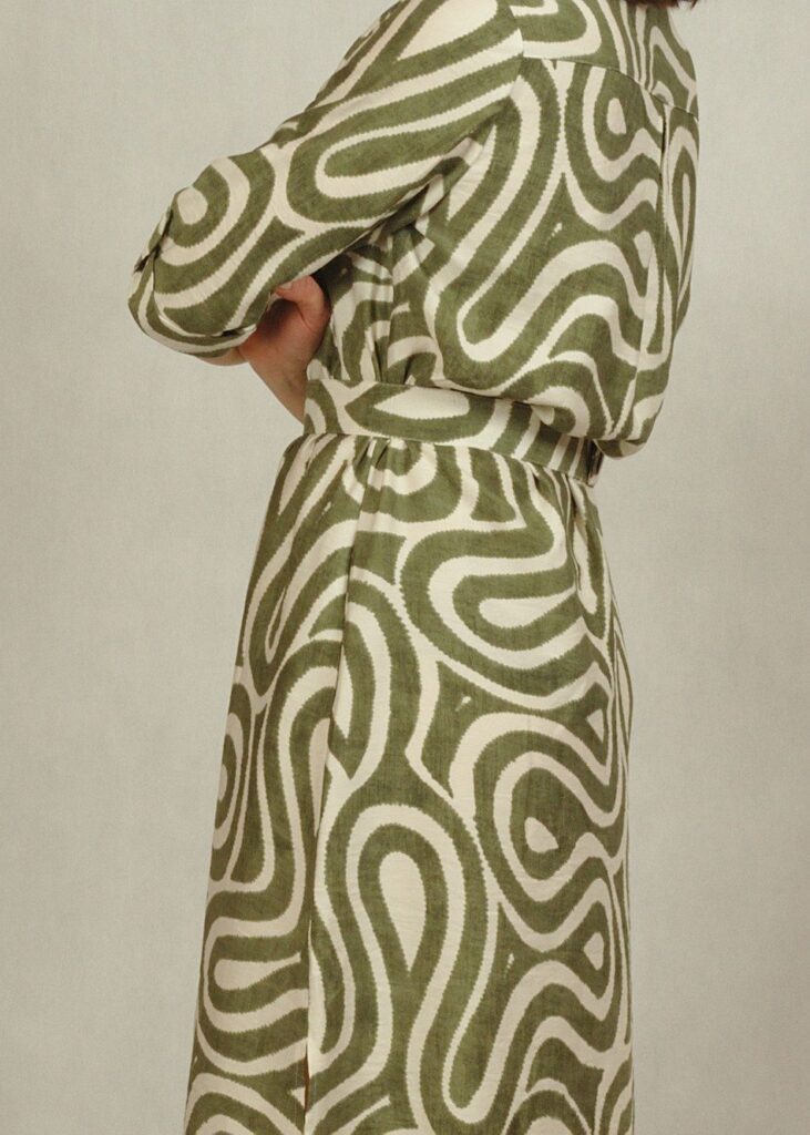Jeśli cenisz wygodę, a jednocześnie chcesz wyglądać modnie, ta sukienka w oliwkowe wzory to idealna propozycja.