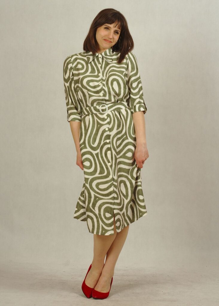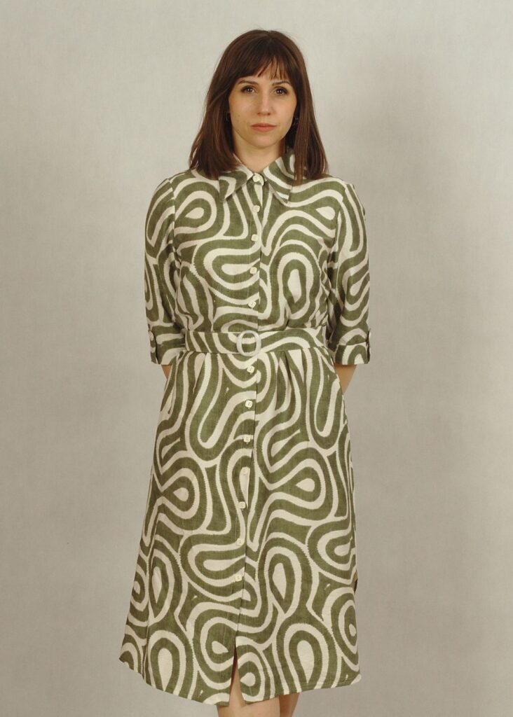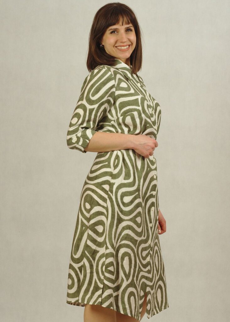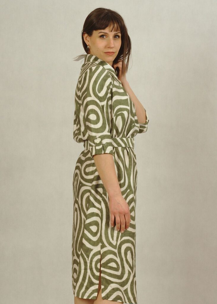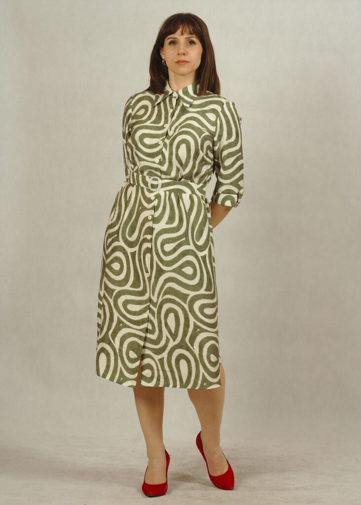 Jeśli cenisz wygodę, a jednocześnie chcesz wyglądać modnie, ta sukienka w oliwkowe wzory to idealna propozycja.