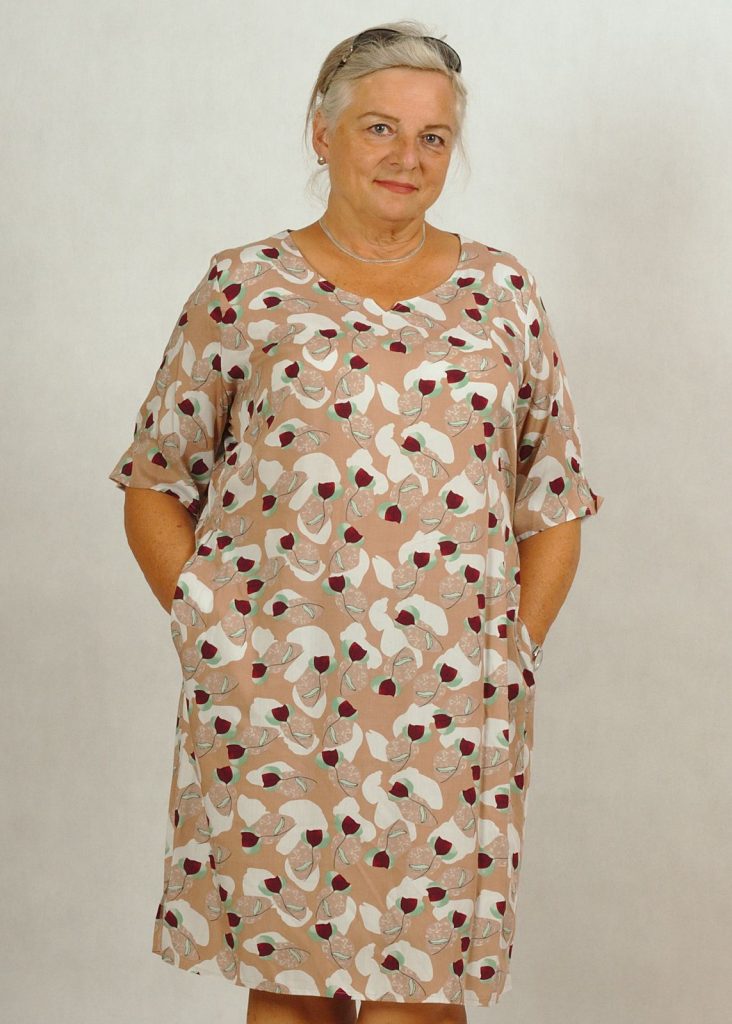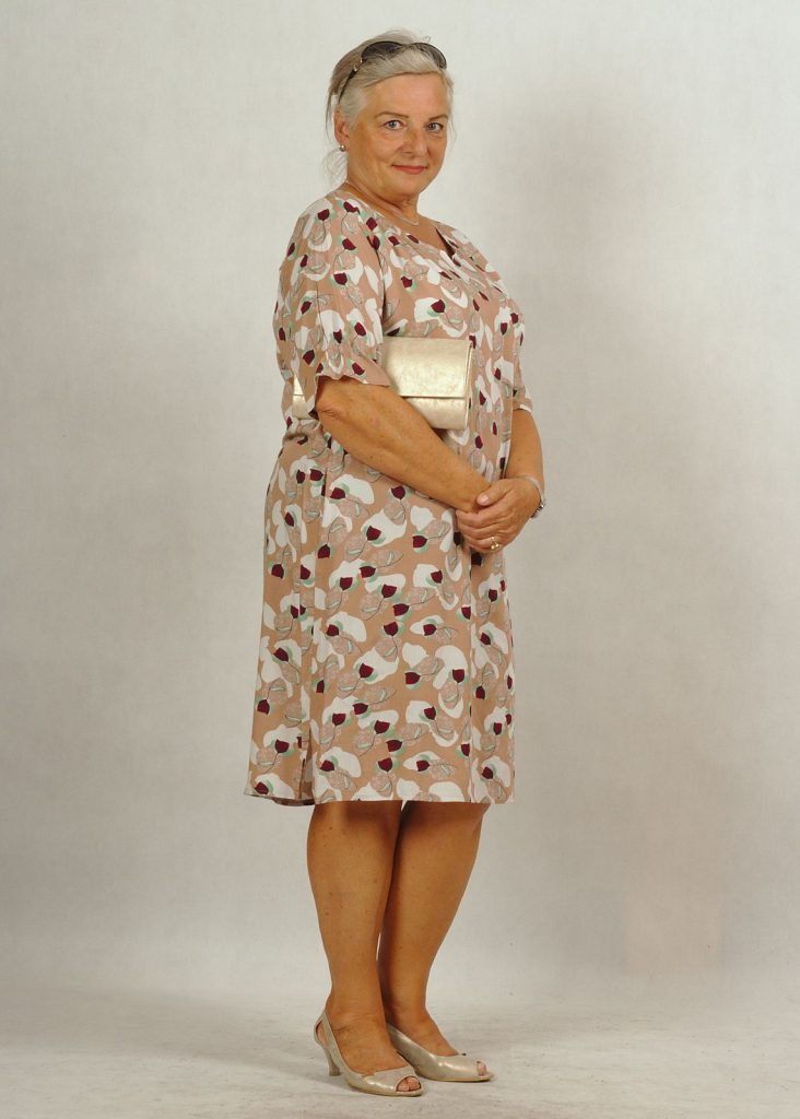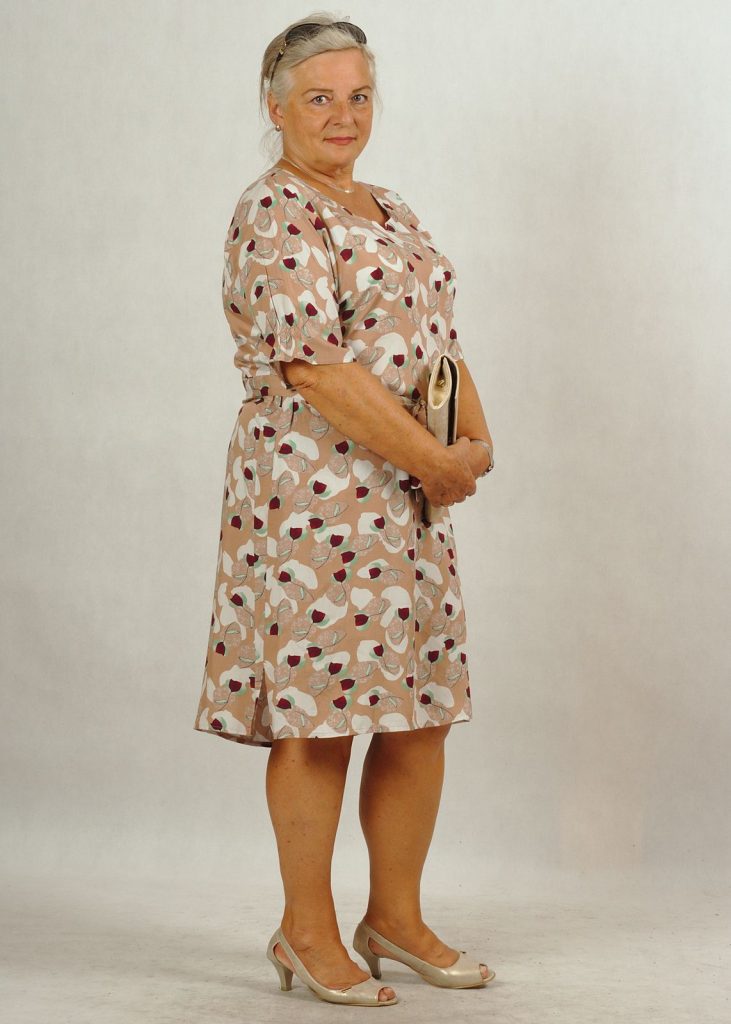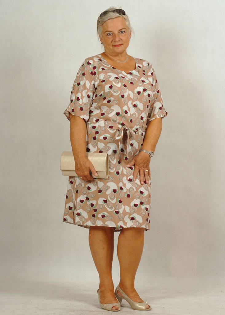 Bazowy kolor sukienki – beż.