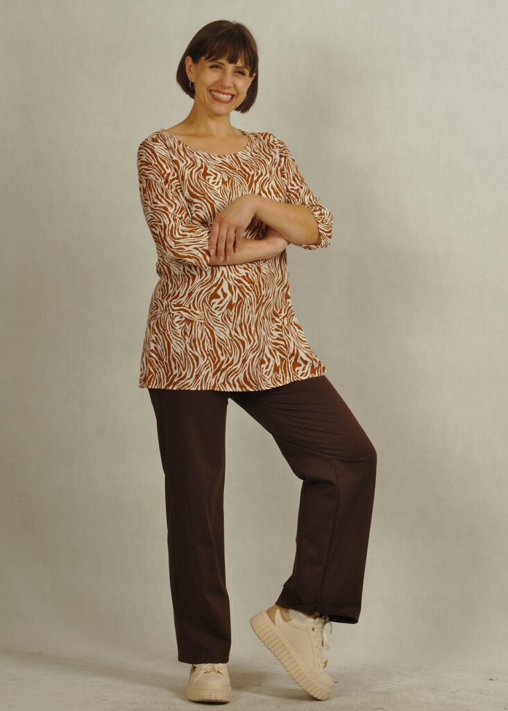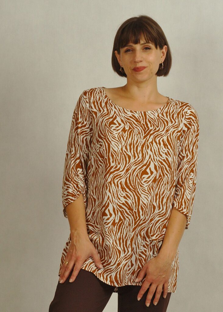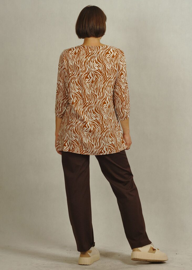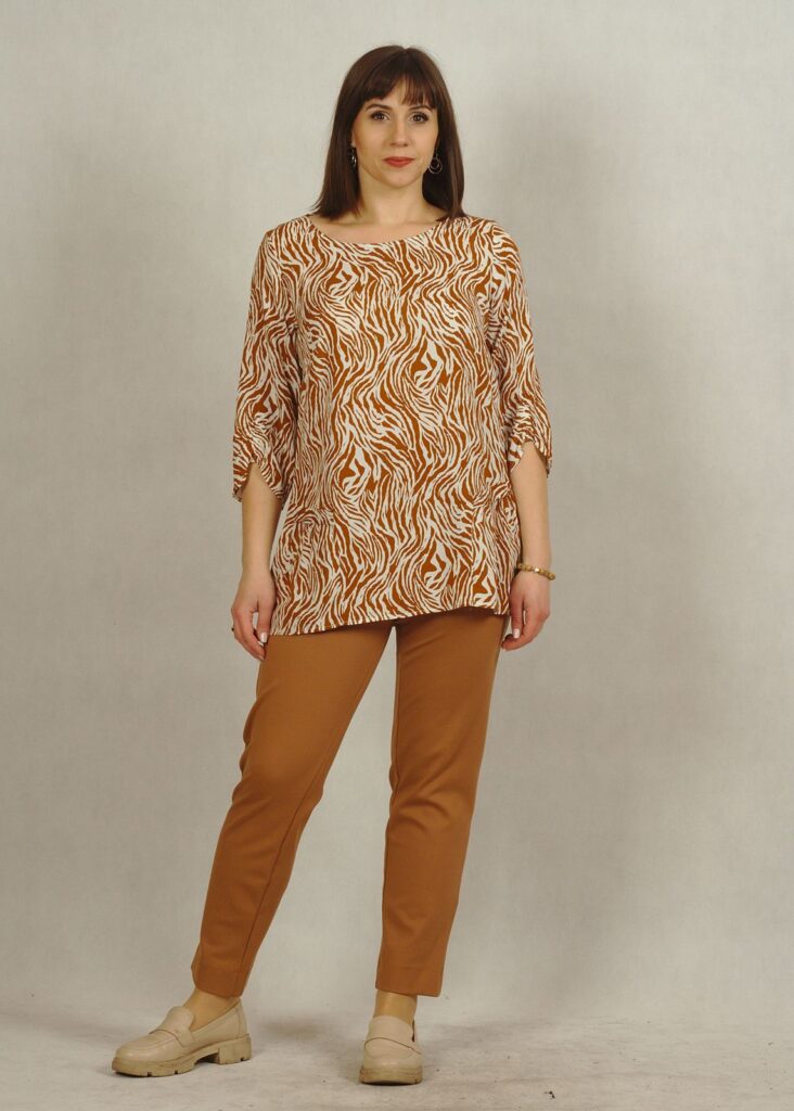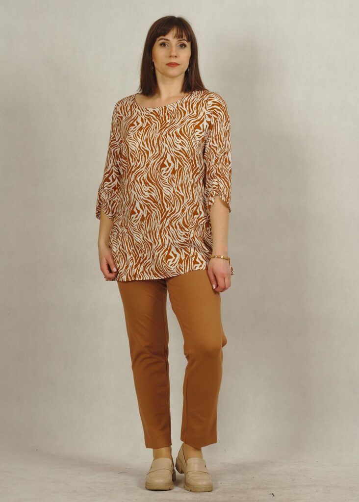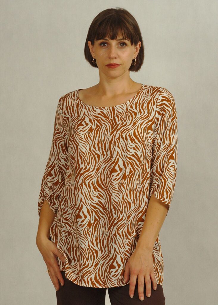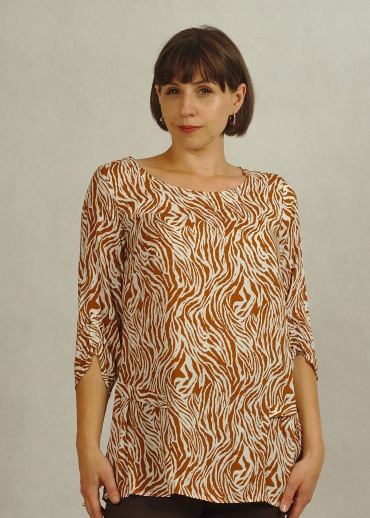 Tkaninowa biała bluzka w kamelowy wzór – zebra /830/