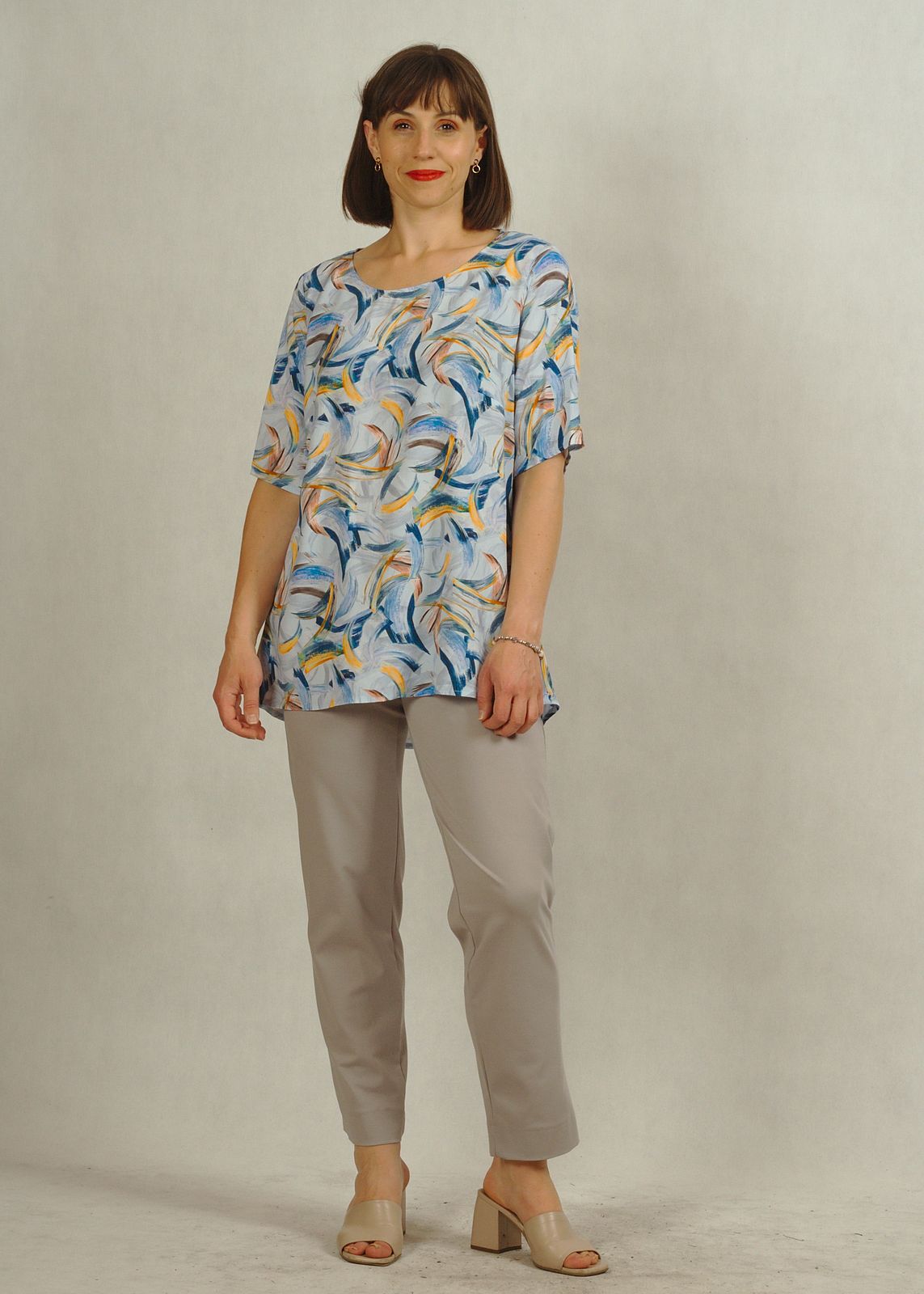 Niezależnie od okazji, nasza bluzka z wiskozy w błękitnym odcieniu to idealny wybór, by wyglądać modnie i czuć się komfortowo.