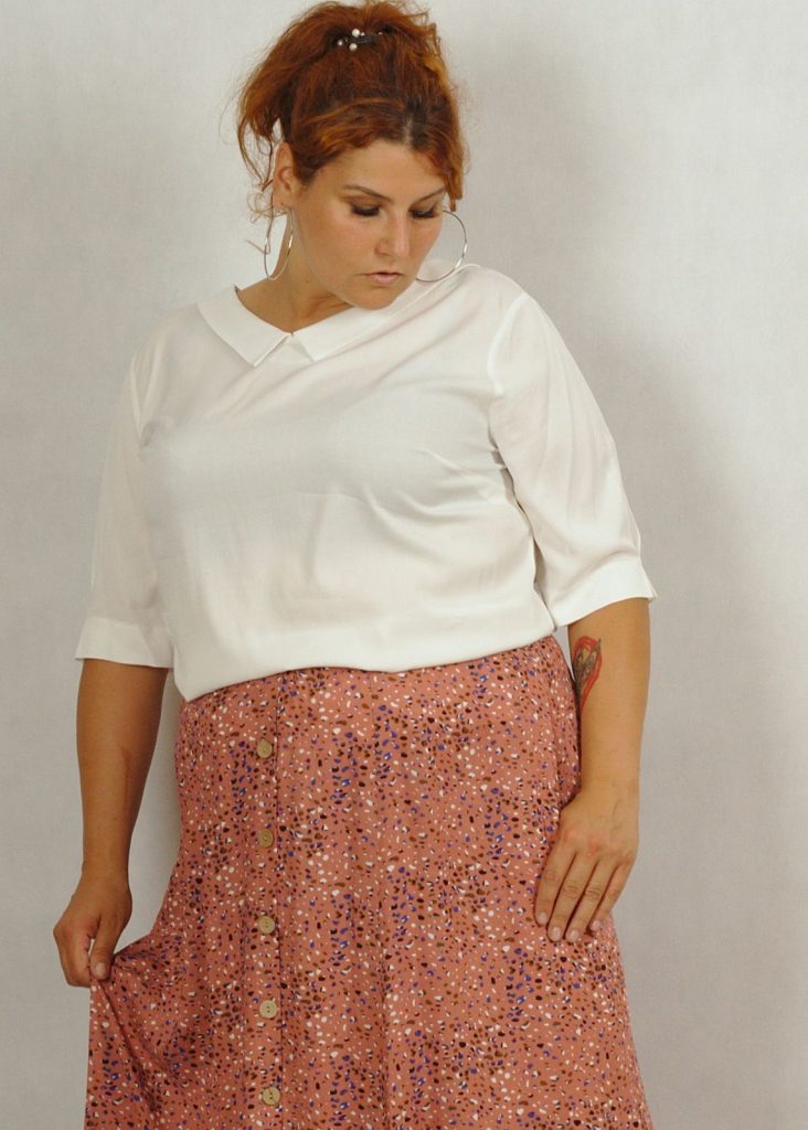 Bluzka z tkaniny gładkiej w kolorze ecru.