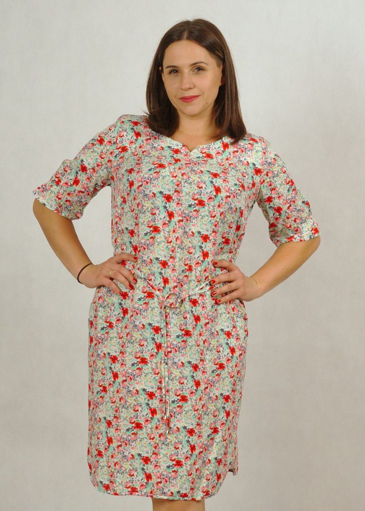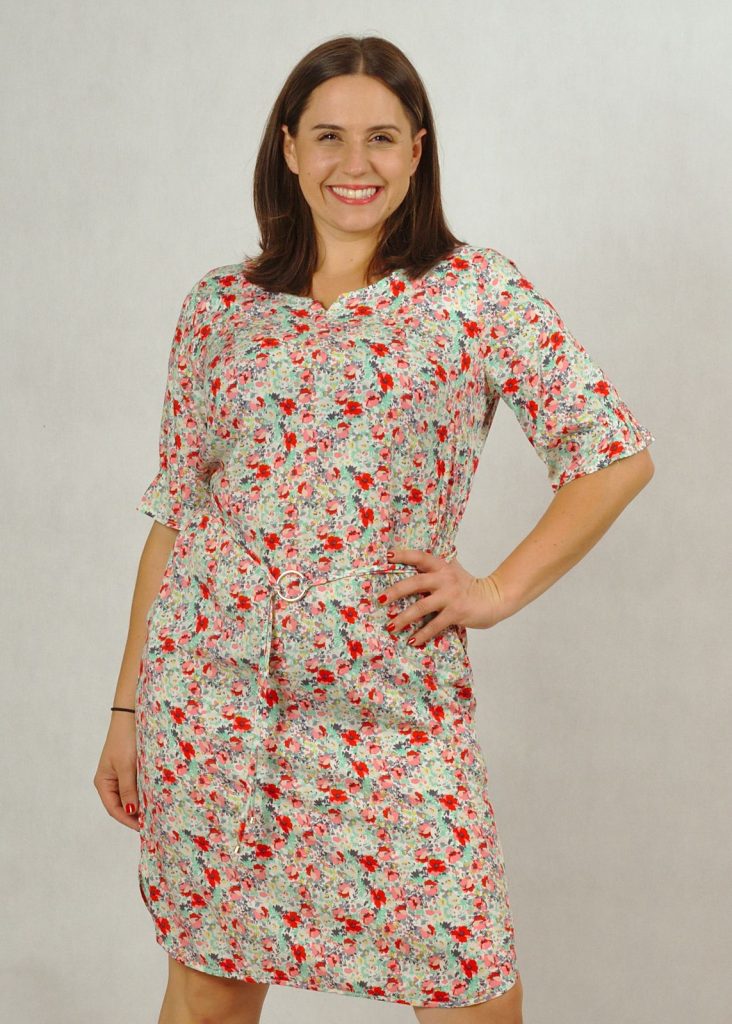 Elegancka sukienka z tkaniny wiskozowej 100% w piękne kwiatki..