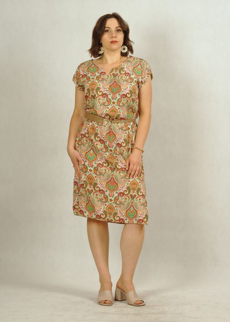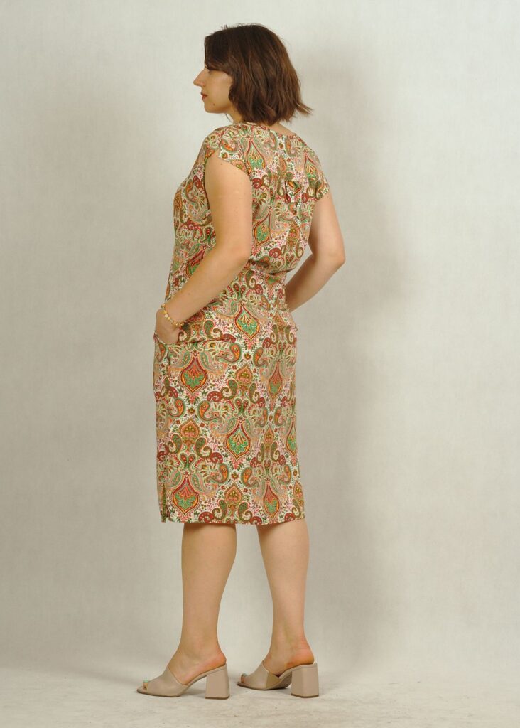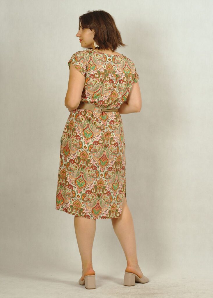 Sukienka w paisley, czyli turecki print w odcieniach brązu, czerwonego i zielonego*. Wiskoza 100% to materiał fantastyczny na lato.