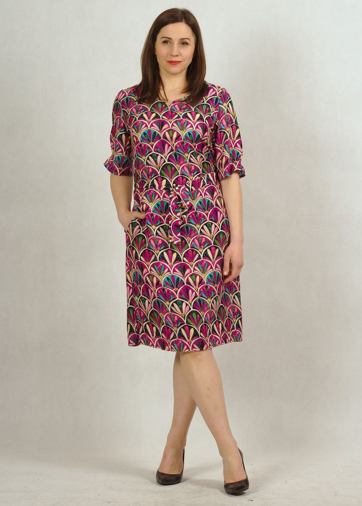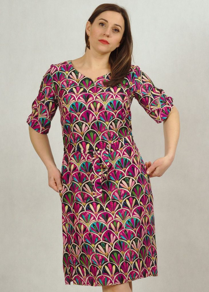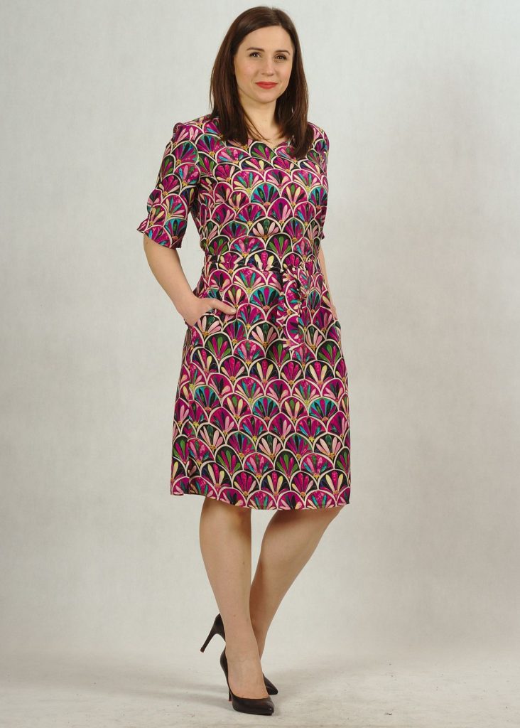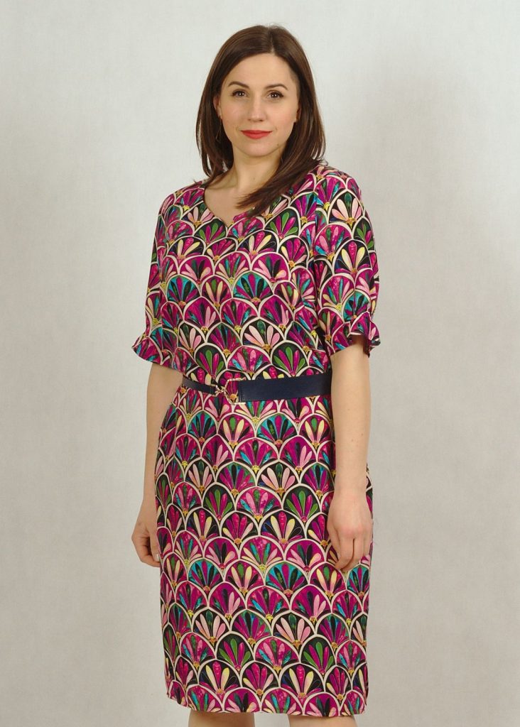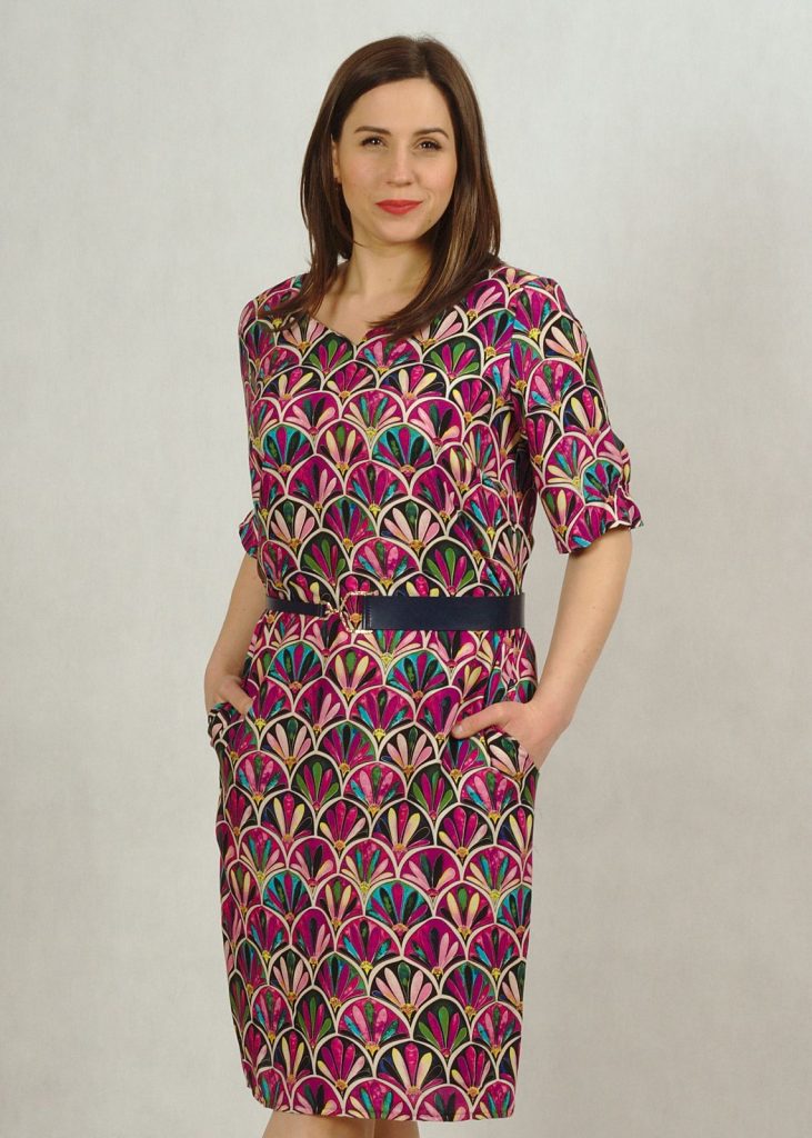 Elegancka sukienka z tkaniny wiskozowej 100% w oryginalny mozaikowy wzór.
