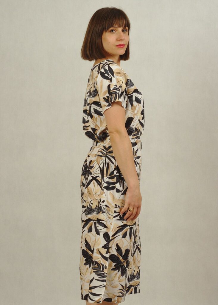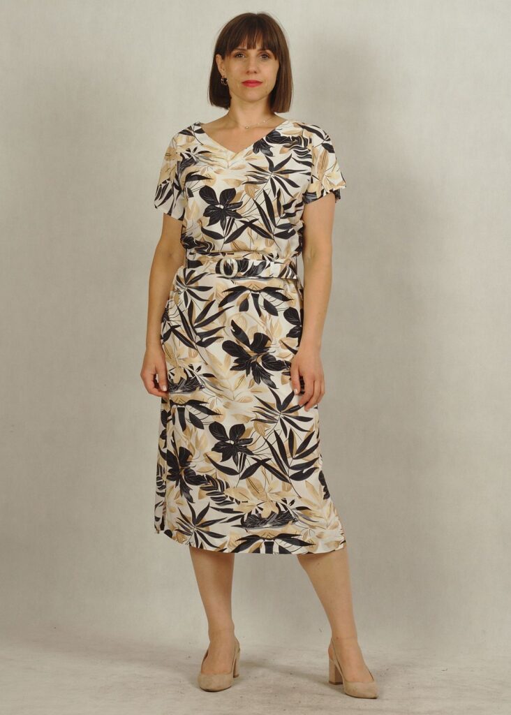 Letnia tkaninowa sukienka w kwiaty z kimonowym rękawkiem i paskiem – idealna na ciepłe dni!