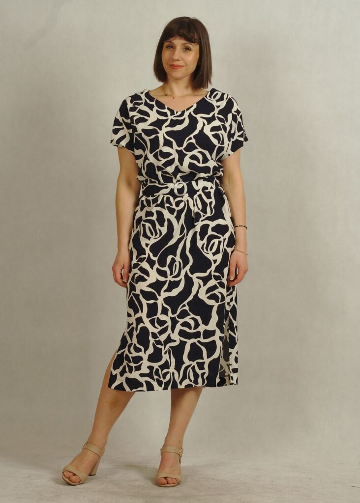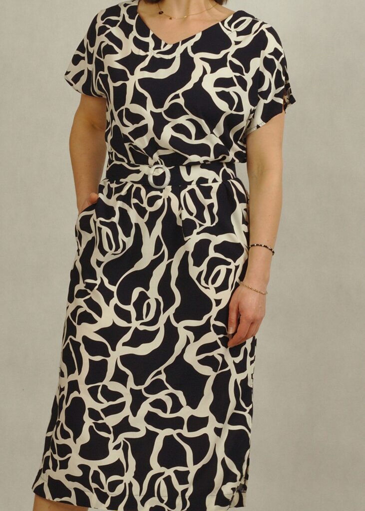 Tkaninowa sukienka z kimonowym rękawkiem to idealna propozycja na lato – lekka, kobieca i wygodna.