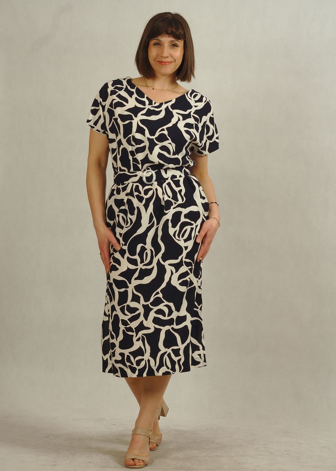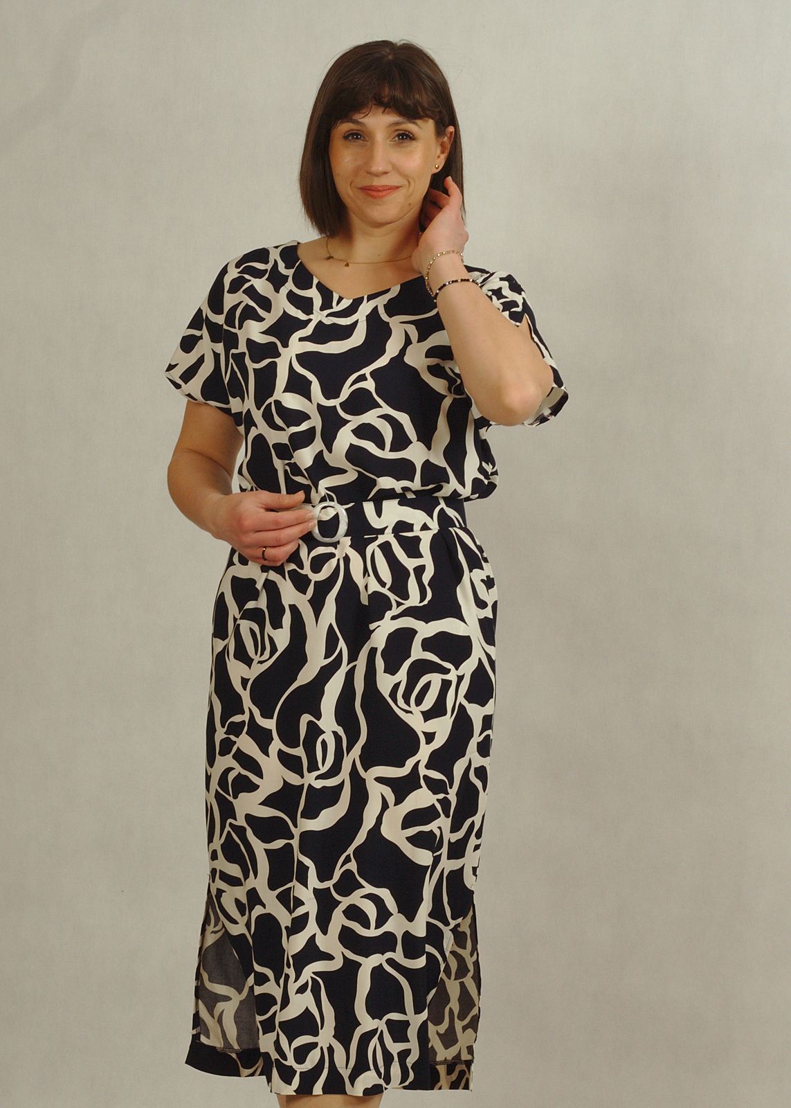 Uniwersalny krój i wzorzysta tkanina świetnie podkreślają styl w duchu mody plus size, zapewniając komfort i pewność siebie.