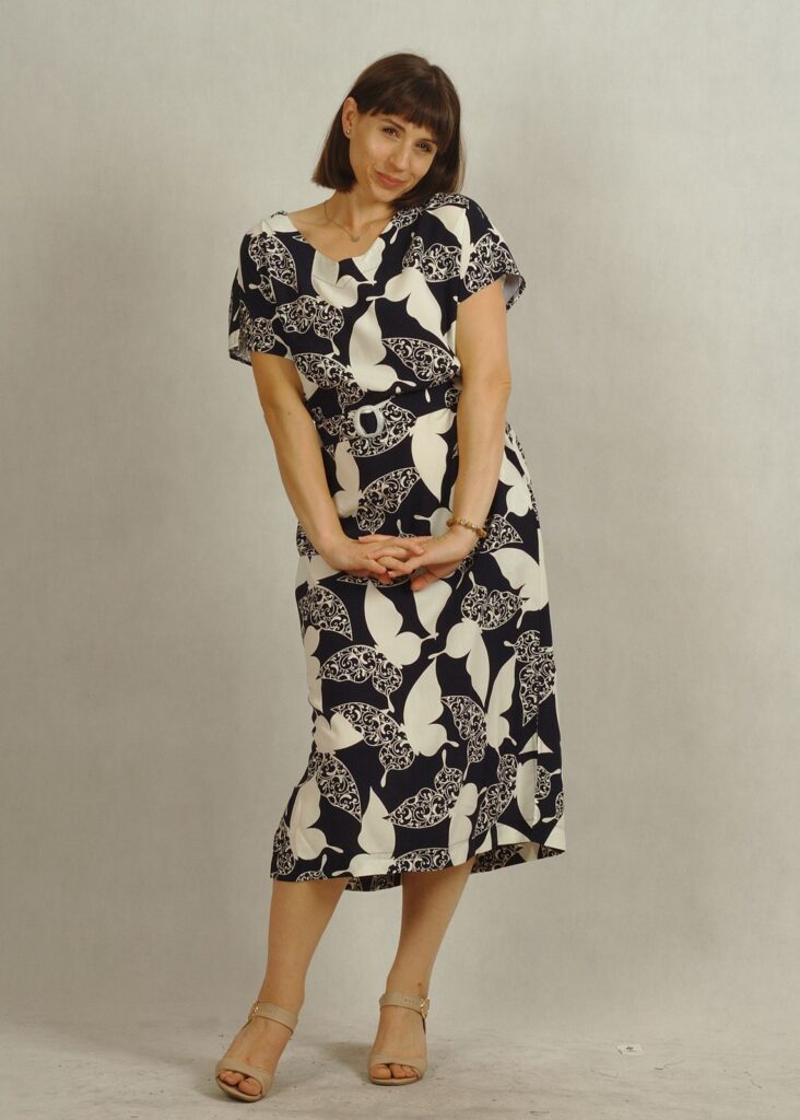 Tkaninowa sukienka z kimonowym rękawkiem to idealna propozycja na lato – lekka, kobieca i wygodna.