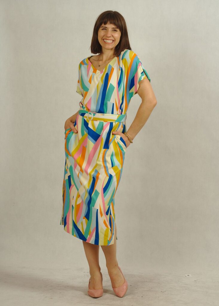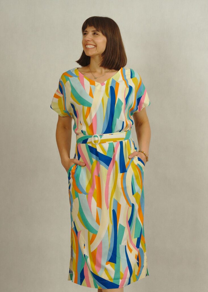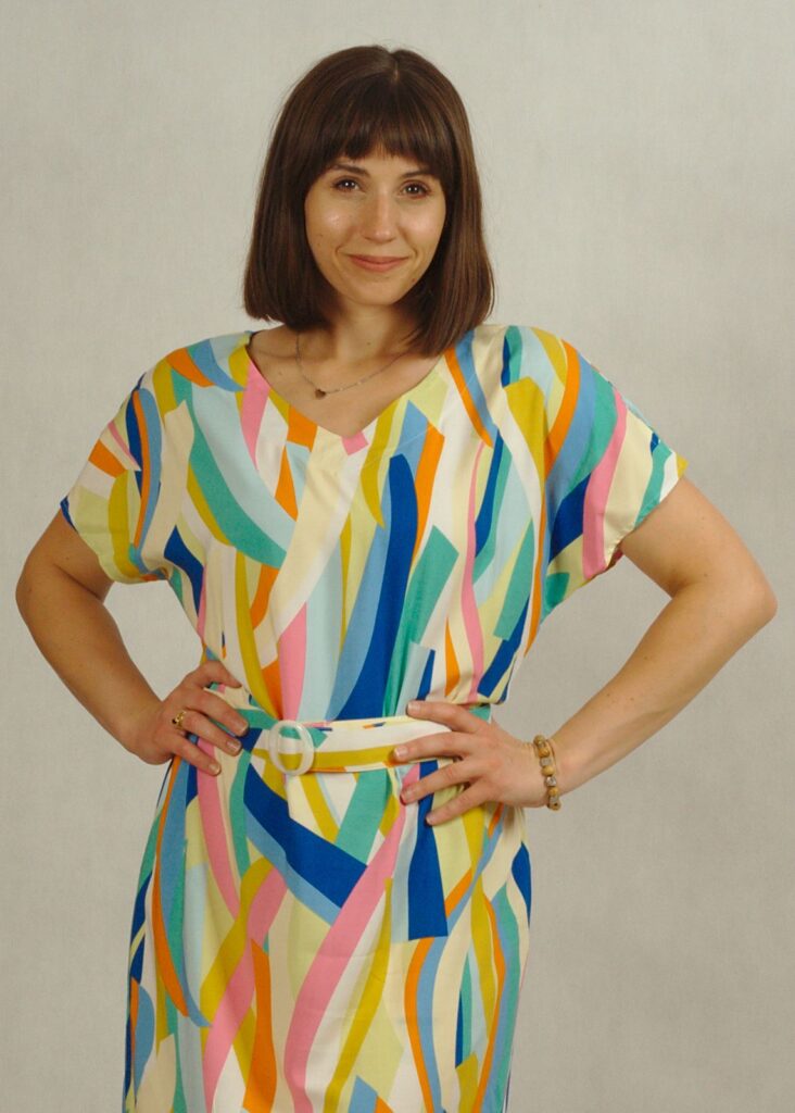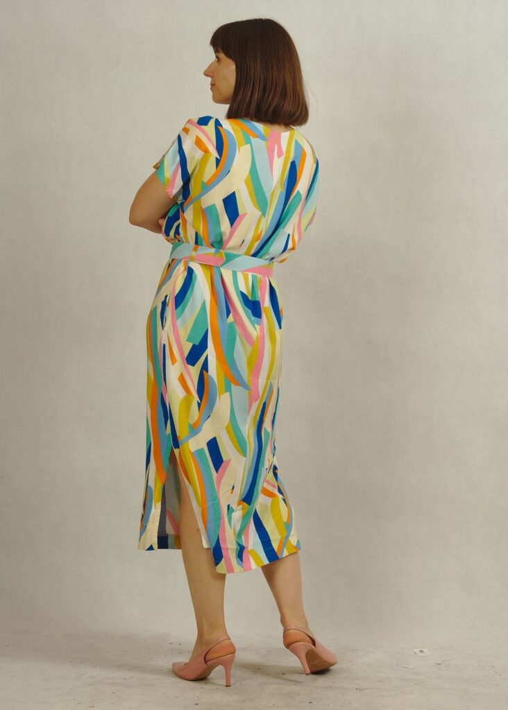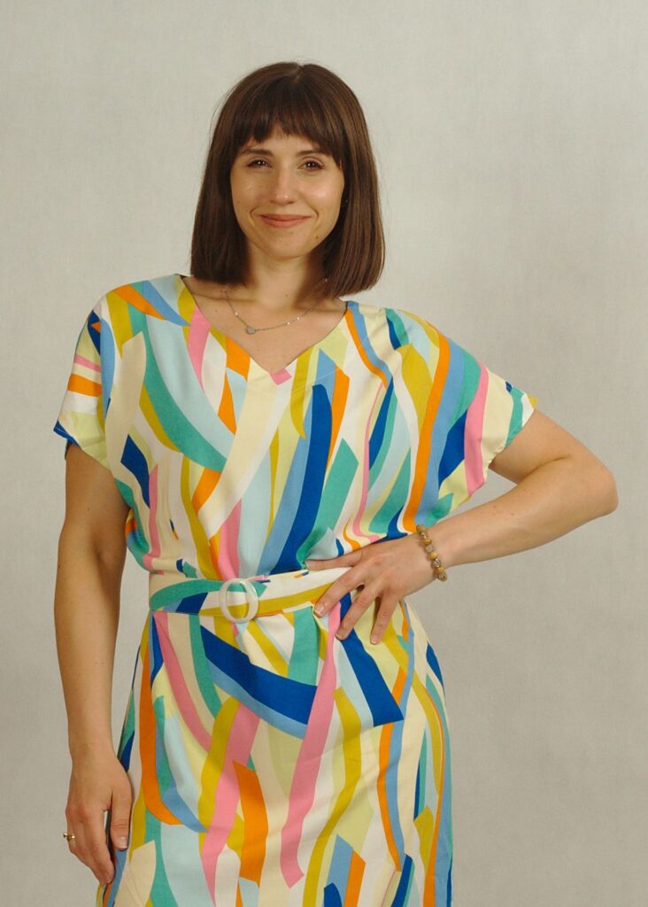 Tkaninowa sukienka z kimonowym rękawkiem to idealna propozycja na lato – lekka, kobieca i wygodna.